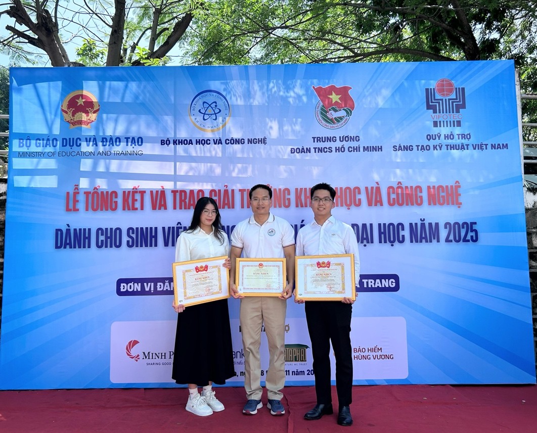 Ngày 8/11 vừa qua, tại Lễ tổng kết và trao Giải thưởng Khoa học và Công nghệ dành cho sinh viên trong cơ sở giáo dục đại học năm 2025, sinh viên Trường Đại học Khoa học đã xuất sắc giành 03 giải Nhì cấp Bộ, ghi dấu ấn ở cả hai lĩnh vực Khoa học Tự nhiên và Khoa học Xã hội. Đây là thành tích đáng tự hào, thể hiện chất lượng đào tạo, năng lực nghiên cứu và tinh thần sáng tạo không ngừng của sinh viên Nhà trường.