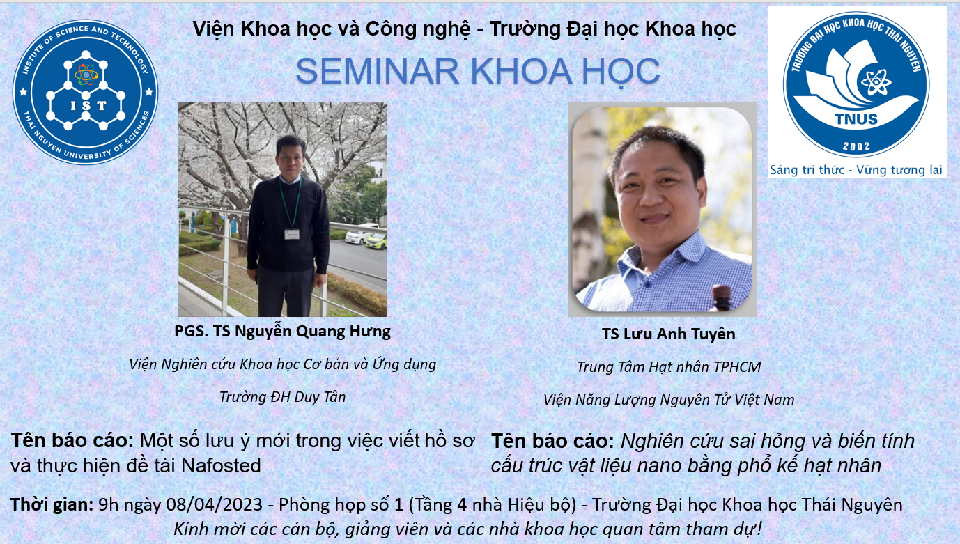 Ngày 08/4/2023, Viện Khoa học và Công nghệ tổ chức Seminar Khoa học cấp Viện với sự tham gia của nhiều nhà khoa học đến từ các cơ sở nghiên cứu hàng đầu Việt Nam. Viện Khoa học và Công nghệ giới thiệu thông tin tóm tắt về Seminar Khoa học: