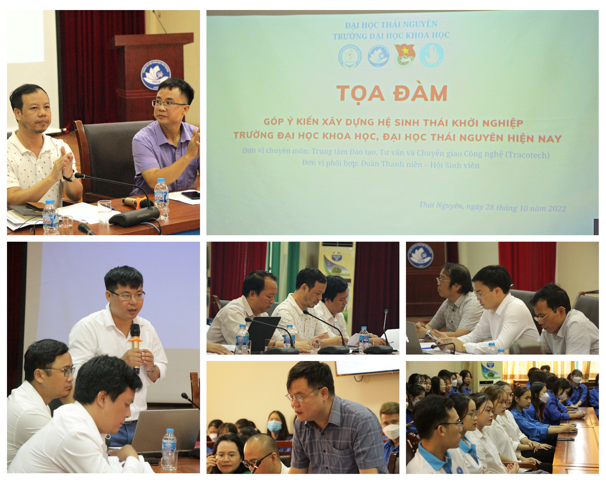 Nhằm nâng cao tinh thần khởi nghiệp cho giảng viên trẻ, sinh viên của Trường Đại học Khoa học, góp phần xây dựng Hệ sinh thái khởi nghiệp trong trường đại học, ngày 28/10, Trung tâm Đào tạo, Tư vấn và chuyển giao công nghệ (ĐT, TV & CGCN) đã tổ chức Tọa đàm“Góp ý kiến xây dựng hệ sinh thái khởi nghiệp Trường Đại học Khoa học” dưới hình thức trực tiếp và trực tuyến.