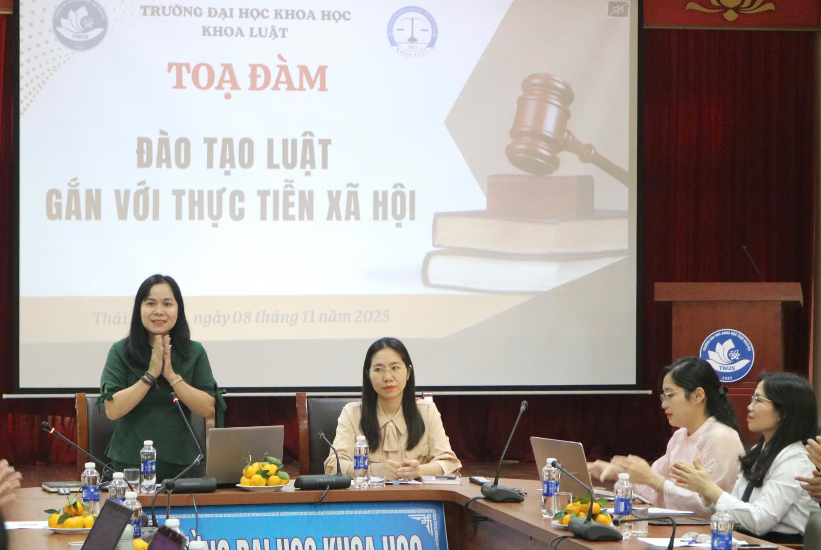 Sáng ngày 08/11, tại Hội trường tầng 5, Nhà Hiệu bộ, Khoa Luật – Trường Đại học Khoa học (TNUS) đã trang trọng tổ chức Tọa đàm khoa học với chủ đề “Đào tạo Luật gắn với thực tiễn xã hội”. Đây là một trong những hoạt động học thuật trọng tâm của Khoa trong năm học 2025, nhằm tăng cường gắn kết giữa đào tạo lý luận pháp lý và thực tiễn hành nghề, đồng thời góp phần đổi mới nội dung, phương pháp giảng dạy và nâng cao chất lượng đào tạo nguồn nhân lực pháp lý, đáp ứng yêu cầu phát triển của đất nước trong giai đoạn mới.
