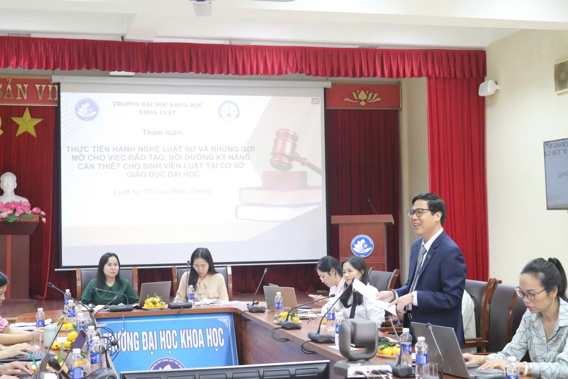 Trong không khí học thuật nghiêm túc, cởi mở và xây dựng, các tham luận trình bày tại tọa đàm tập trung phân tích, đánh giá sâu sắc mối quan hệ giữa lý luận và thực tiễn trong đào tạo luật hiện nay. Nhiều ý kiến thống nhất rằng, đào tạo pháp lý hiện đại cần vượt ra khỏi khuôn khổ truyền thống nặng về lý thuyết, chuyển mạnh sang mô hình đào tạo theo định hướng ứng dụng. Theo đó, sinh viên không chỉ được trang bị kiến thức nền tảng về pháp luật mà còn được rèn luyện kỹ năng nghề nghiệp, kỹ năng tư duy phản biện, kỹ năng phân tích hồ sơ và xử lý tình huống pháp lý cụ thể. Sự kết hợp chặt chẽ giữa học thuật và thực hành được nhìn nhận là yếu tố cốt lõi trong việc hình thành năng lực hành nghề vững vàng cho sinh viên sau khi tốt nghiệp.