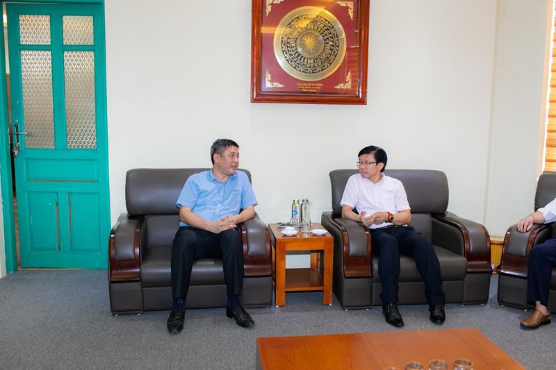 Hiệu trưởng, PGS.TS. Nguyễn Văn Đăng tiếp và trao đổi GS. Hoàng Anh Tuấn.