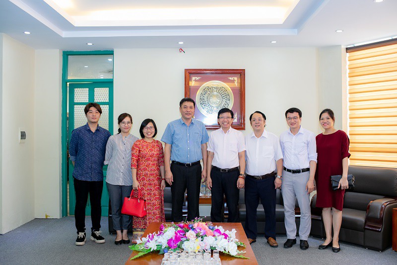 Hiệu trưởng, PGS.TS. Nguyễn Văn Đăng chụp ảnh cùng GS. Hoàng Anh Tuấn và cán bộ Khoa Khoa học Xã hội và Nhân văn