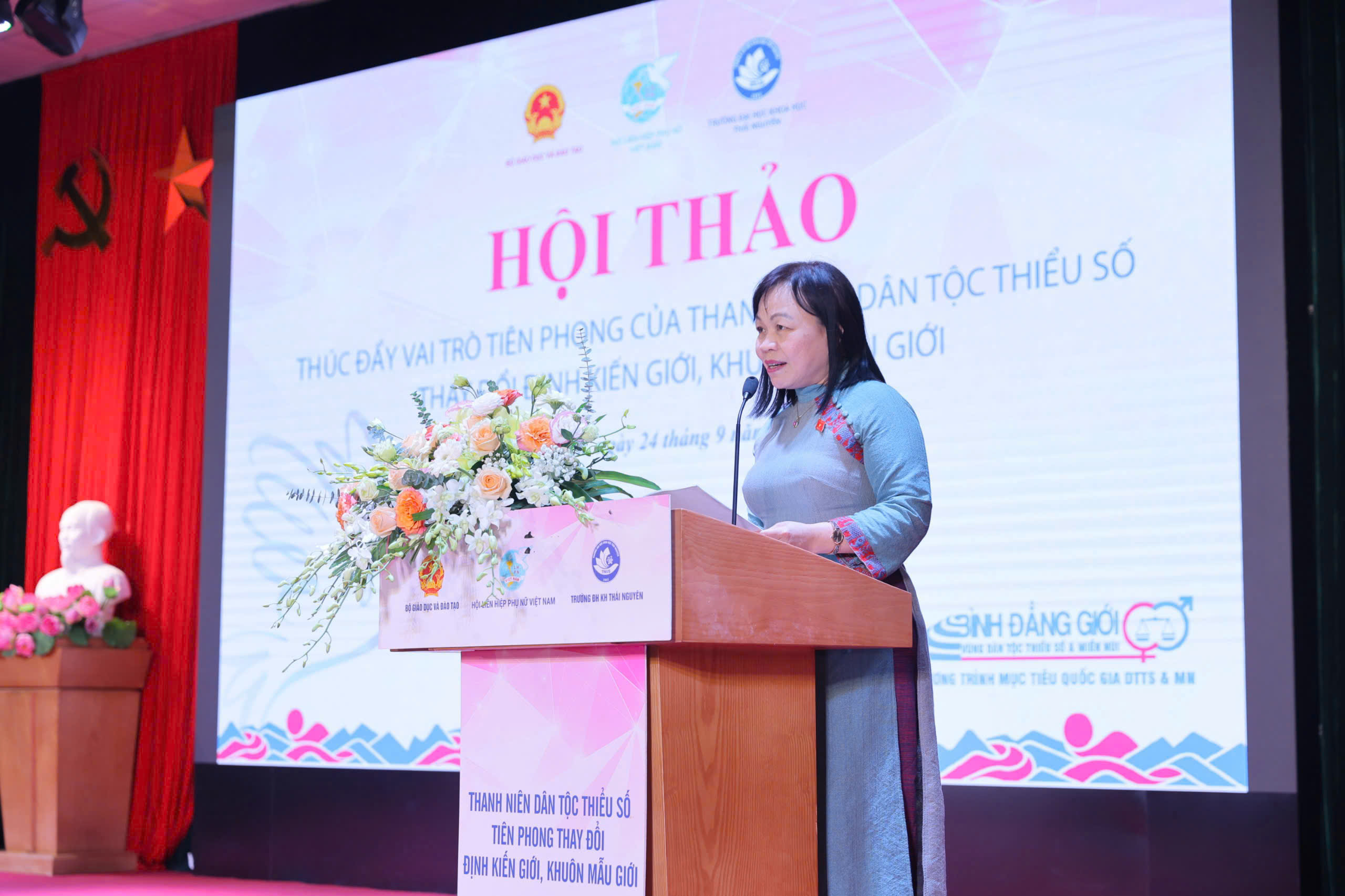 Phát biểu khai mạc hội thảo, Bà Nguyễn Thị Thu Hiền - Phó Chủ tịch Hội LHPN Việt Nam, nhấn mạnh: Một trong những nguyên nhân dẫn đến tồn tại, thậm chí tồn tại dai dẳng những vấn đề bất bình đẳng giới, cản trở sự phát triển của cả nam và nữ ở khu vực này là định kiến giới và khuôn mẫu giới, vì vậy, hội thảo có ý nghĩa quan trọng trong việc thúc đẩy vai trò tiên phong của thanh niên DTTS trong thay đổi định kiến giới, khuôn mẫu giới...