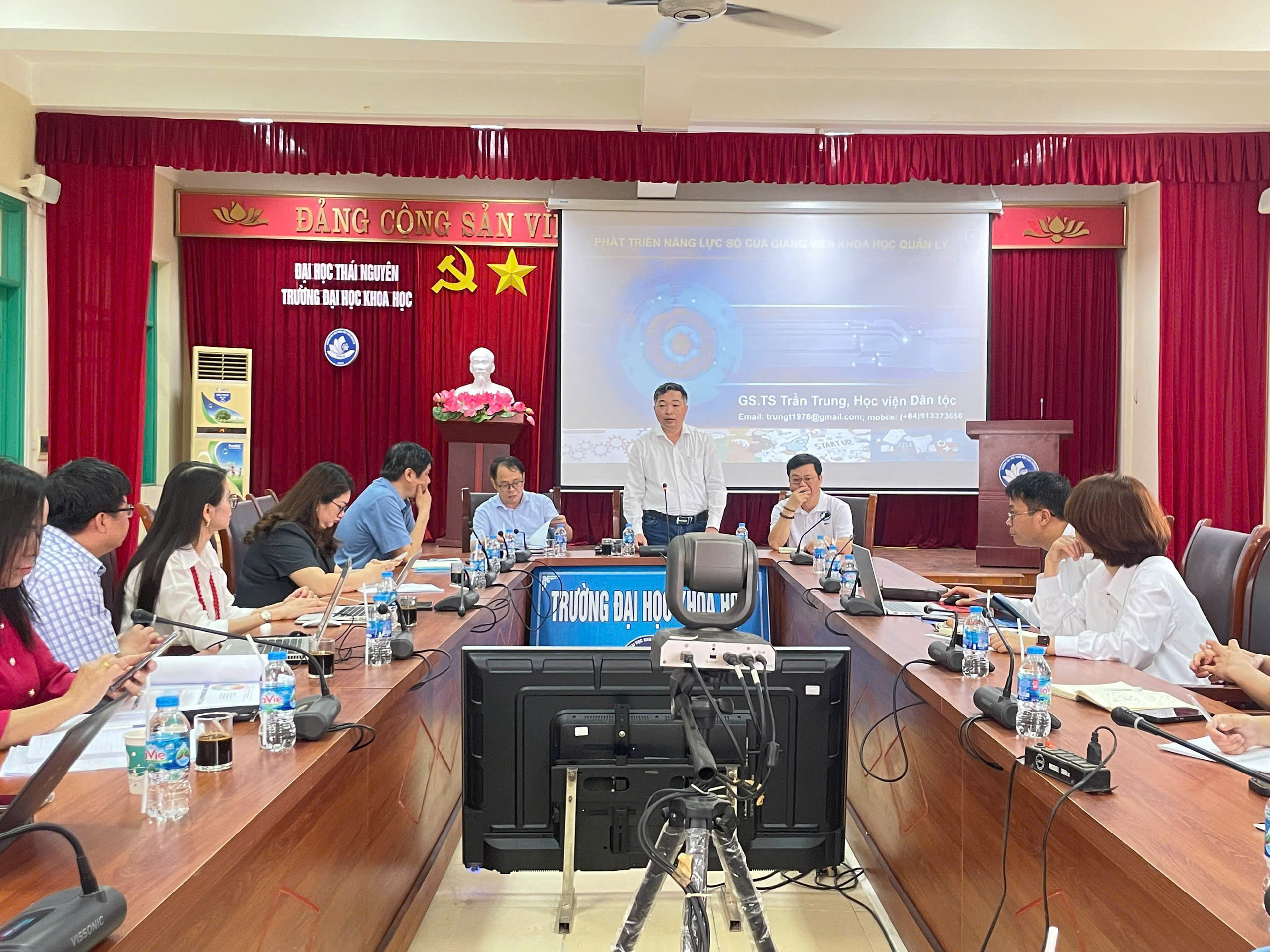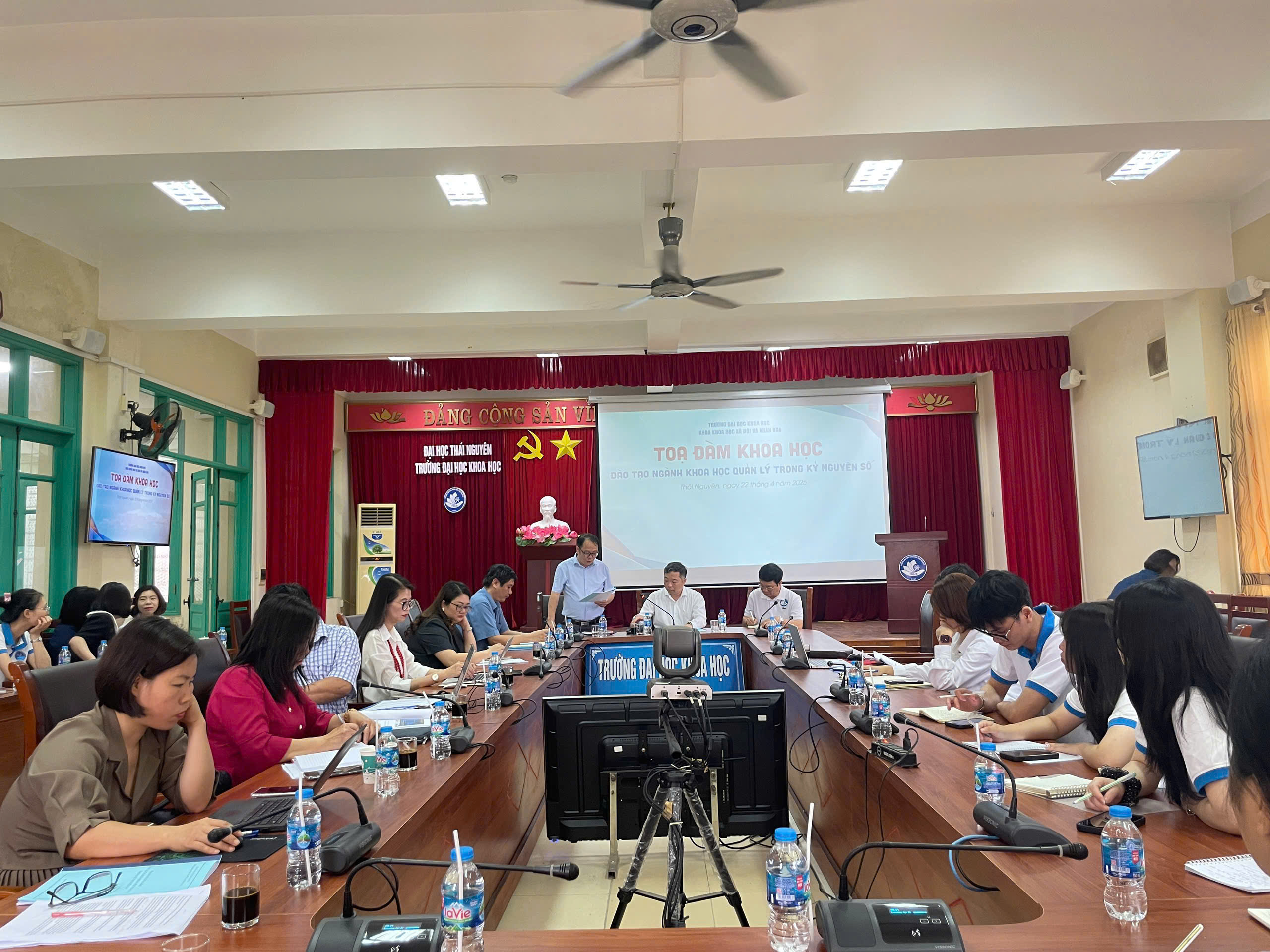 Với mong muốn tạo diễn đàn học thuật trao đổi về các thông tin mới về khoa học quản lý và đào tạo nguồn nhân lực ngành Khoa học quản lý; Tạo cơ hội trao đổi học thuận giữa các chuyên gia đầu ngành trong lĩnh vực Khoa học quản lý với đội ngũ CBGV của Trường Đại học Khoa học (ĐHKH); Đẩy mạnh sự kết nối, hợp tác nghiên cứu, đào tạo về Khoa học quản lý và lấy ý kiến các chuyên gia về CTĐT ngành KHQL ở bậc đại học và thạc sĩ, Khoa KHXH&NVđã tổ chức buổi Tọa đàm khoa học với chủ đề “Đào tạo ngành Khoa học quản lý trong kỷ nguyên số”.