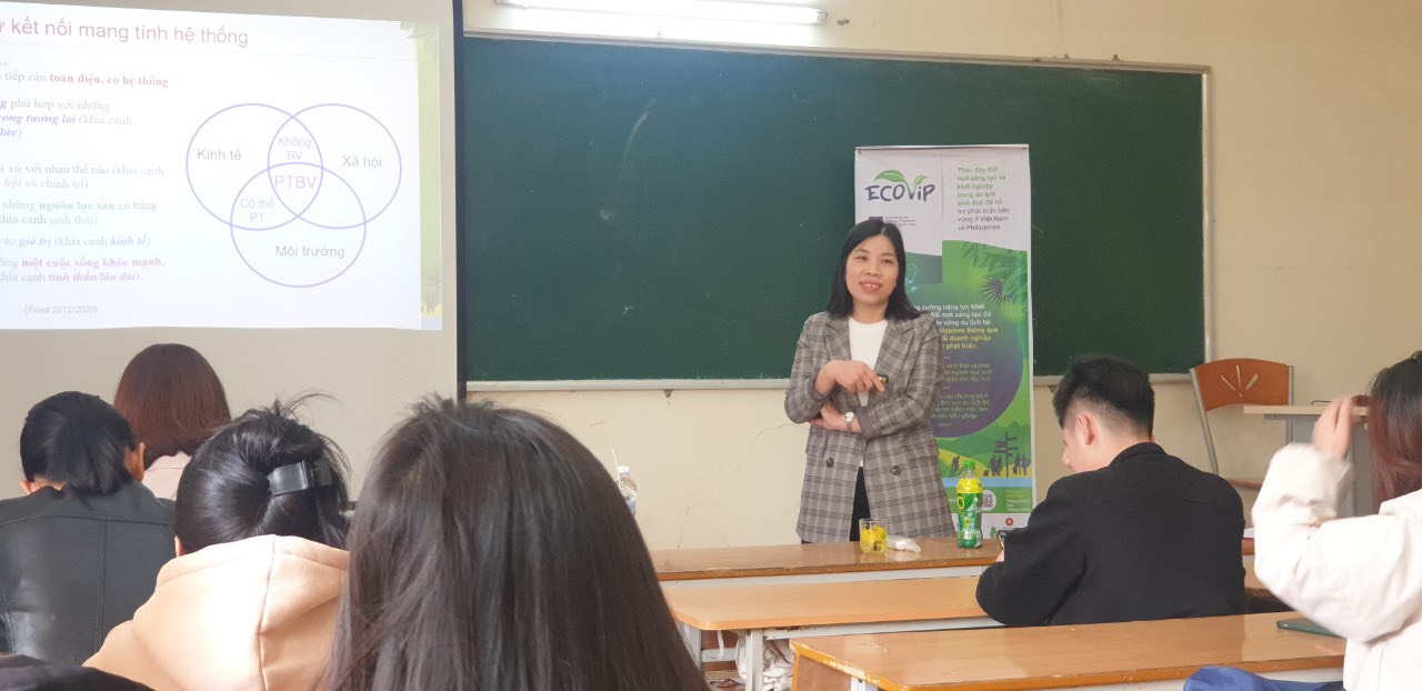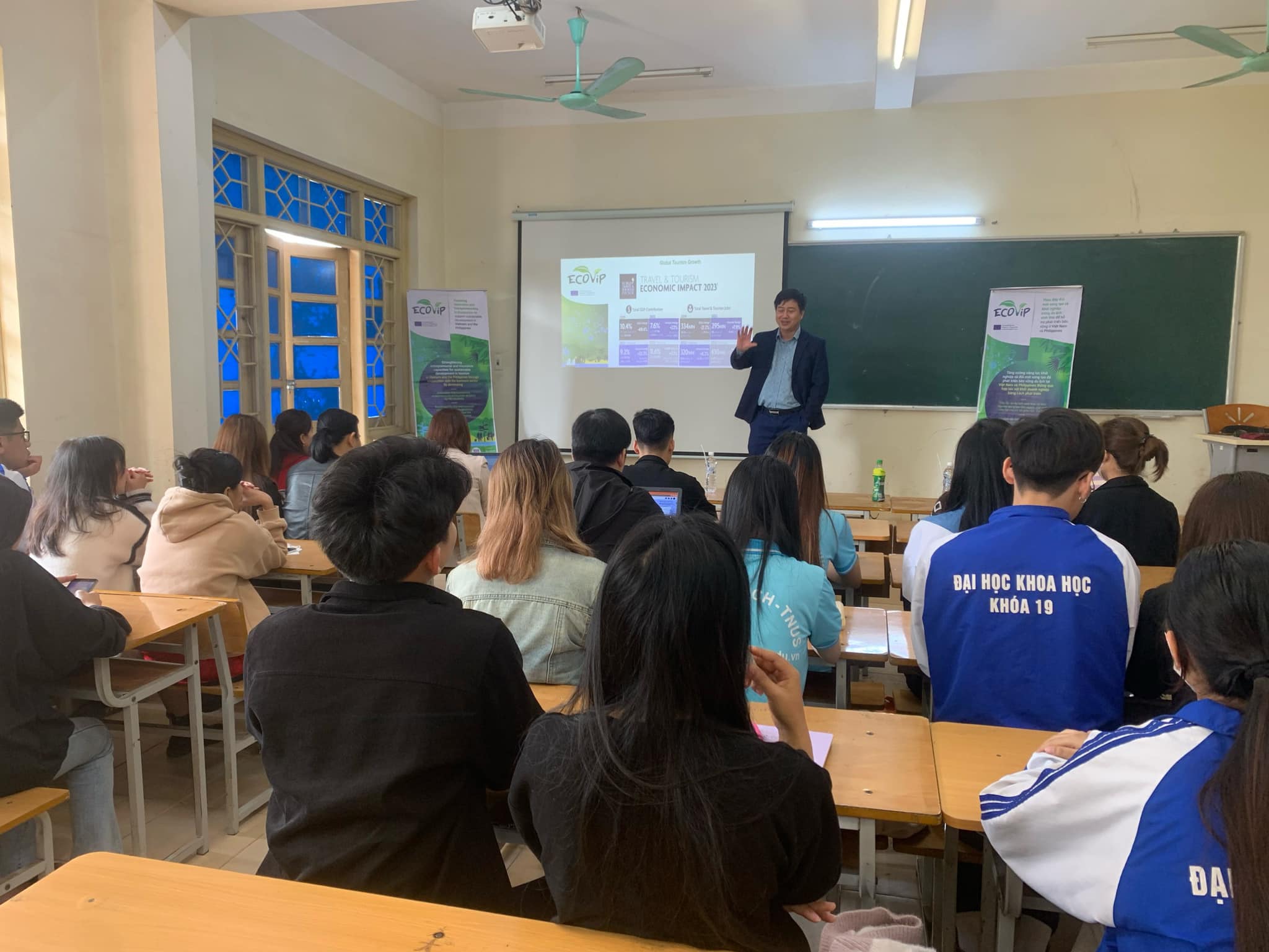 Trong 2 ngày 21/03/2024 và 22/3/2024, Nhóm thành viên Dự án ECOViP Trường Đại học Khoa học đã tổ chức các buổi Replication Workshop ToT2 với chủ đề “Du lịch sinh thái và phát triển bền vững” đến sinh viên, học viên và giảng viên của trường. Đây là nội dung trong kỳ tập huấn lần 2 thuộc khuôn khổ dự án ECOViP - Thúc đẩy đổi mới sáng tạo và khởi nghiệp trong du lịch sinh thái để hỗ trợ phát triển bền vững ở Việt Nam và Philippines.
