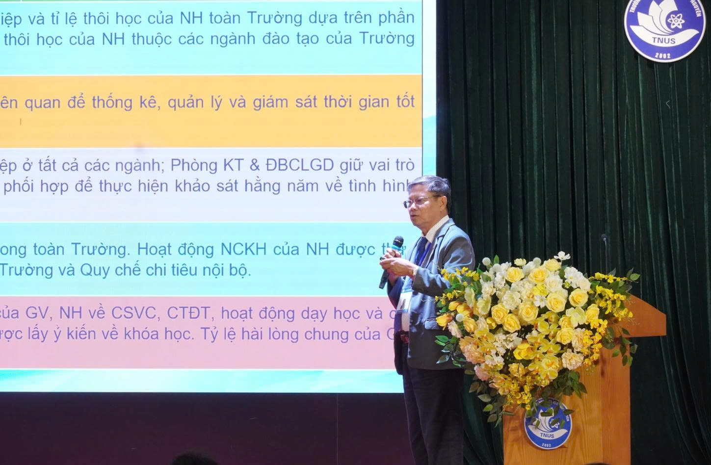 Thay mặt Trung tâm KĐCLGD Thăng Long, TS. Nguyễn Văn Đường đánh giá cao tinh thần làm việc của các chuyên gia trong Đoàn đánh giá ngoài, đồng thời cảm ơn sự phối hợp, hợp tác đầy trách nhiệm của tập thể các cán bộ giảng viên và sinh viên Trường Đại học Khoa học trong suốt quá trình Trung tâm và Đoàn đánh giá ngoài triển khai các hoạt động đánh giá tại Trường. TS. Nguyễn Văn Đường khẳng định, sự hợp tác toàn diện của Nhà trường là một trong những yếu tố quan trọng quyết định cho sự thành công của đợt khảo sát chính thức nói riêng và công tác kiểm định chất lượng giáo dục nói chung.