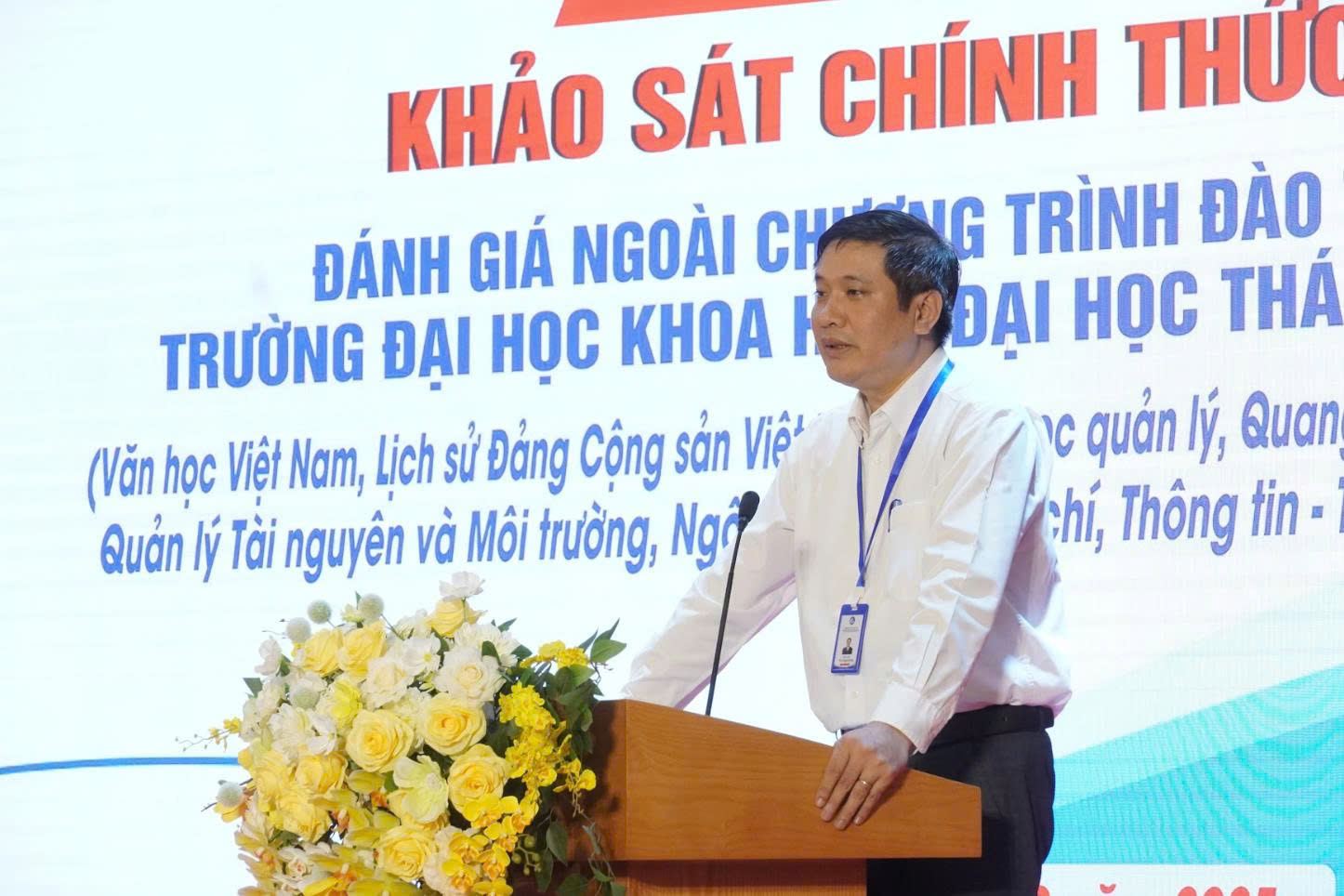 Tại phiên Bế mạc, PGS.TS. Lê Văn Anh, Trưởng đoàn Đánh giá ngoài, cùng các thành viên đã trình bày báo cáo sơ bộ kết quả khảo sát chính thức 10 CTĐT của Trường Đại học Khoa học. Báo cáo khái quát quá trình làm việc của Đoàn chuyên gia, từ đó đưa ra những nhận định, đánh giá và khuyến nghị cải tiến chất lượng đối với từng CTĐT theo tiêu chuẩn của Bộ Giáo dục và Đào tạo. Đồng thời, báo cáo cũng đề xuất một số giải pháp đổi mới trong hoạt động đào tạo và quản lý chung của Nhà trường, góp phần nâng cao chất lượng giáo dục trong thời gian tới.