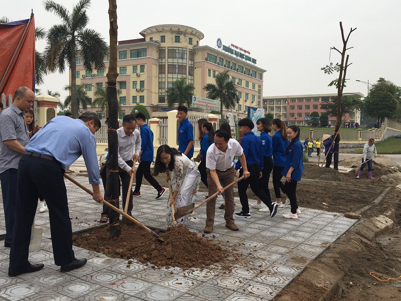 PGS.TS Nguyễn Văn Đăng- Hiệu trưởng Nhà trường và các đ/c lãnh đạo trồng cây lưu niệm