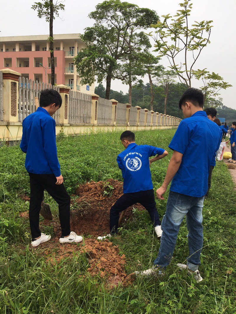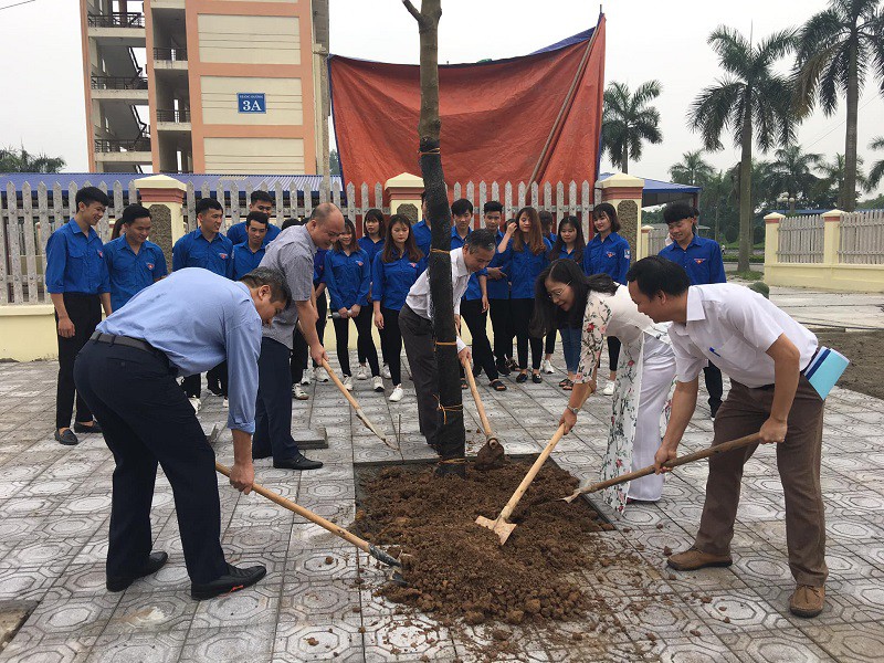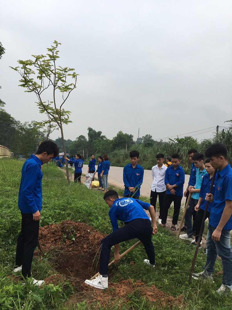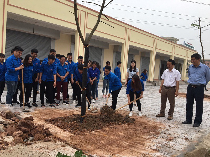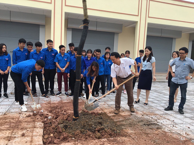 Các em sinh viên trồng cây