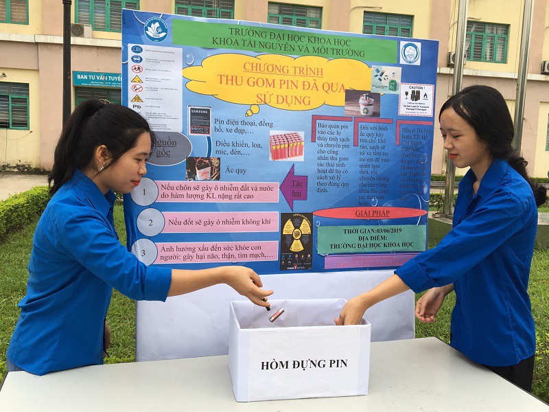 Sinh viên Trường ĐHKH thực hiện thu gom pin đã qua sử dụng