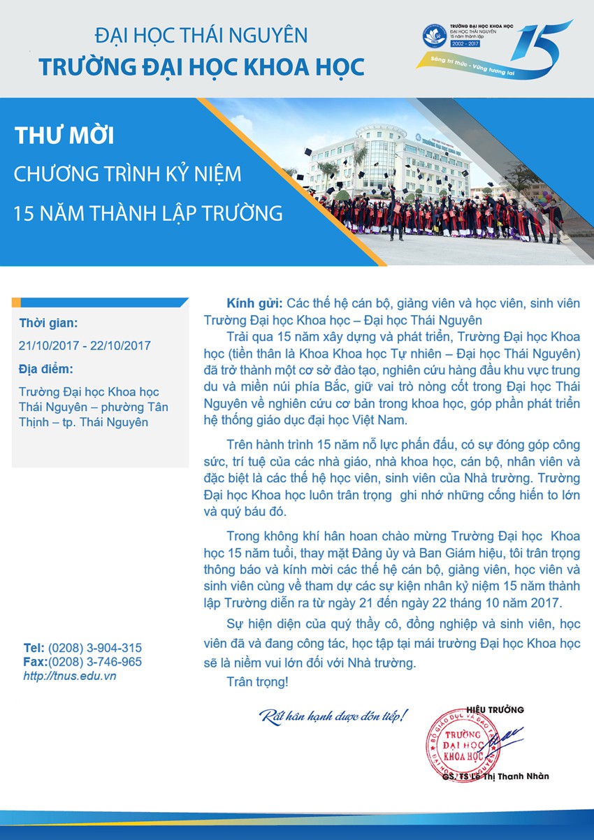 Chương trình kỷ niệm 15 năm thành lập trường Đại học Khoa học