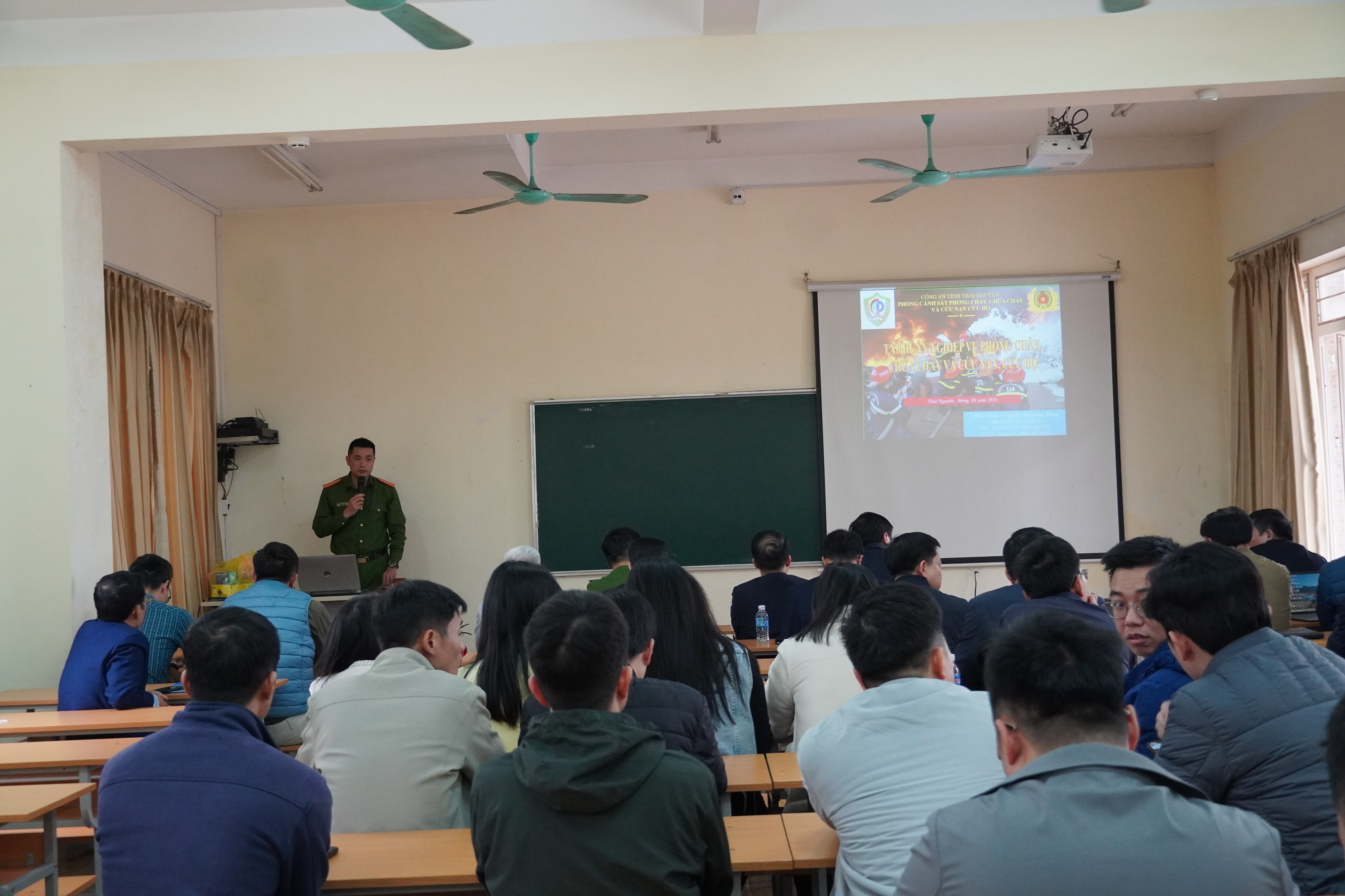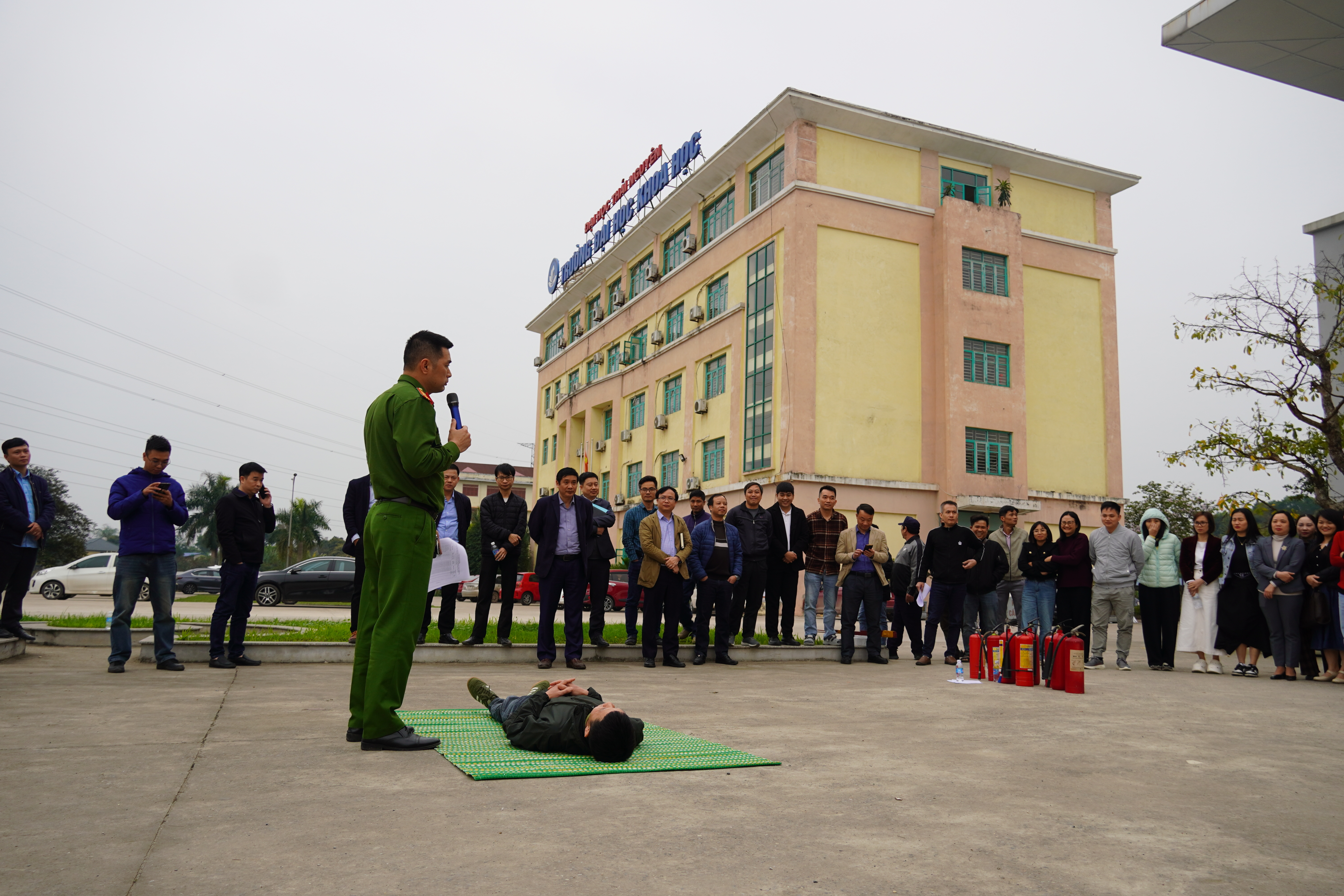 Thực hiện Luật Phòng cháy và chữa cháy năm 2021; Căn cứ các nghị định về công tác PCCC và CHCN của Chính phủ như: Nghị định số 136/2020/NÐ-CP ngày 24 tháng 11 năm 2020; Nghị định số 83/2017/NÐ-CP ngày 18 tháng 7 năm 2017; Nghị định số 50/2024/NÐ-CP ngày 10 tháng 5 năm 2024; Căn cứ Kế hoạch số 941/KH-PC07 ngày 11 tháng 3 năm 2025 của Phòng Cảnh sát PCCC và CNCH về Huấn luyện nghiệp vụ PCCC và CNCH đối với Trường Đại học Khoa học; Triển khai Kế hoạch số 399/KH-ĐHKH ngày 14/3/2025 của Trường ĐHKH về việc tổ chức tuyên truyền, tập huấn kiến thức, kỹ năng về phòng cháy, chữa cháy và cứu nạn, cứu hộ; Với mục đích nâng cao nhận thức, ý thức trách nhiệm về công tác PCCC và CNCH cho cán bộ, viên chức, người lao động và đội viên Đội PCCC cơ sở; Kết hợp việc huấn luyện nghiệp vụ PCCC và CNCH cho Ban chỉ đạo, lực lượng PCCC và CNCH cơ sở, đồng thời tổ chức tuyên truyền các kiến thức cơ bản về PCCC và CNCH cho toàn thể cán bộ, viên chức, người lao động Nhà trường đảm bảo tính hiệu quả, thiết thực, tránh hình thức, lãng phí, Trường ĐHKH đã phối hợp với Phòng Cảnh sát PCCC và CNCH, Công an Tỉnh Thái Nguyên triển khai chương trình Tuyên truyền, tập huấn kiến thức, kỹ năng về phòng cháy, chữa cháy và cứu nạn, cứu hộ năm 2025 cho viên chức, người lao động Trường ĐHKH.