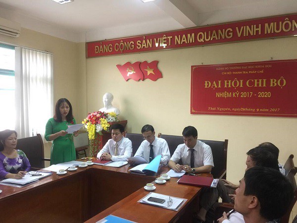 Chi bộ Thanh tra – Pháp chế là tổ chức đảng gồm 03 đơn vị trực thuộc Trường Đại học Khoa học gồm: Phòng Thanh tra – Pháp chế, Trung tâm CNTT-TV, Phòng KT&ĐBCLGD. Chi bộ có 14 đảng viên (trong đó có 05 đảng viên thuộc Phòng Thanh tra – Pháp chế; 03 đảng viên thuộc Trung tâm CNTT-TV; 06 đảng viên thuộc Phòng KT& ĐBCLGD). Thực hiện kế hoạch của Đảng ủy Trường Đại học học Khoa học về việc tổ chức đại hội chi bộ cấp cơ sở, ngày 29/9/2017, tại phòng Hội thảo nhà Hiệu bộ, Chi bộ Thanh tra – Pháp chế đã tiến hành Đại hội chi bộ lần thứ 2, nhiệm kỳ 2017-2020. Tham dự đại hội có đông đủ đảng viên của chi bộ và đại biểu cấp trên đến tham dự và chỉ đạo đại hội.