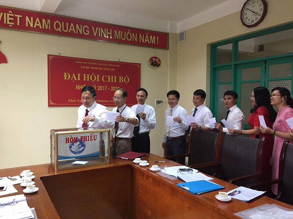 Với tinh thần dân chủ, công bằng, khách quan, đại hội cũng đã tiến hành bầu cử và sáng suốt chọn ra các đồng chí đủ “dũng, tài, tâm” vào Ban chi ủy nhiệm kỳ 2017-2020, đó là 03 đồng chí: Lê Hải Bằng – Trưởng phòng Thanh tra – Pháp chế, giữ chức vụ Bí thư chi bộ; Nguyễn Đình Huy – Giám đốc Trung tâm CNTT-TV giữ chức vụ Phó Bí thư chi bộ; Nguyễn Trường Sơn – Phó phòng KT&ĐBCLGD là Chi ủy viên. Thay mặt Ban chi ủy chi bộ nhiệm kỳ mới, đồng chí Lê Hải Bằng đã gửi lời cảm ơn các cán bộ, đảng viên chi bộ đã tin tưởng, ủng hộ ban chi ủy cũ tiếp tục đảm nhiệm vị trí của mình trong nhiệm kỳ mới 2017-2020. Ban chi ủy xin hứa sẽ đoàn kết, nhất trí, dồn hết năng lực và tâm huyết để lãnh đạo, chỉ đạo chi bộ Thanh tra – Pháp chế ngày càng phát triển và xứng đáng với trọng trách Đảng ủy trường giao phó.