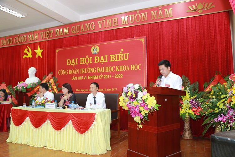 Phát biểu tại Đại hội, PGS.TS. Trần Viết Khanh, Chủ tịch Công đoàn Đại học Thái Nguyên đã biểu dương những thành tích mà Công đoàn Trường đã đạt được. Trong nhiệm kì vừa qua, Công đoàn Trường đã thực hiện tốt các phong trào thi đua, làm tốt các hoạt động xã hội từ thiện; chăm lo và bảo vệ quyền, lợi ích hợp pháp, chính đáng cho người lao động. PGS.TS. Trần Viết Khanh phát biểu chỉ đạo Công đoàn Trường nhiệm kỳ mới tiếp tục triển khai hiệu quả các nội dung đổi mới căn bản toàn diện giáo dục và đào tạo, quan tâm, sáng tạo, bám sát tầm nhìn, sứ mạng, mục tiêu phát triển của nhà trường trong giai đoạn mới.