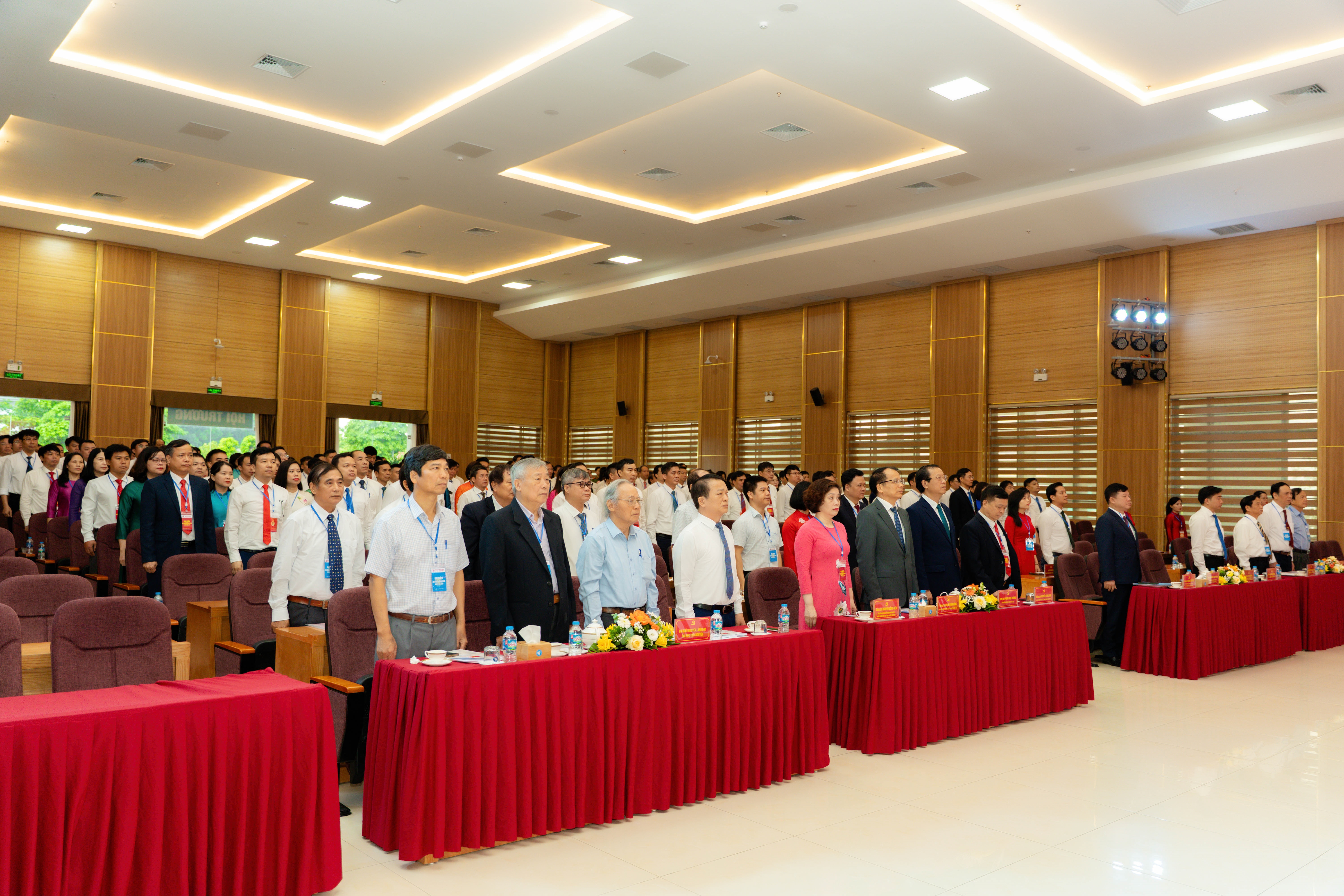 Ảnh 1: Đại biểu tham dự Đại hội đại biểu Đảng bộ ĐHTN lần thứ VII thực hiện nghi lễ Chào cờ