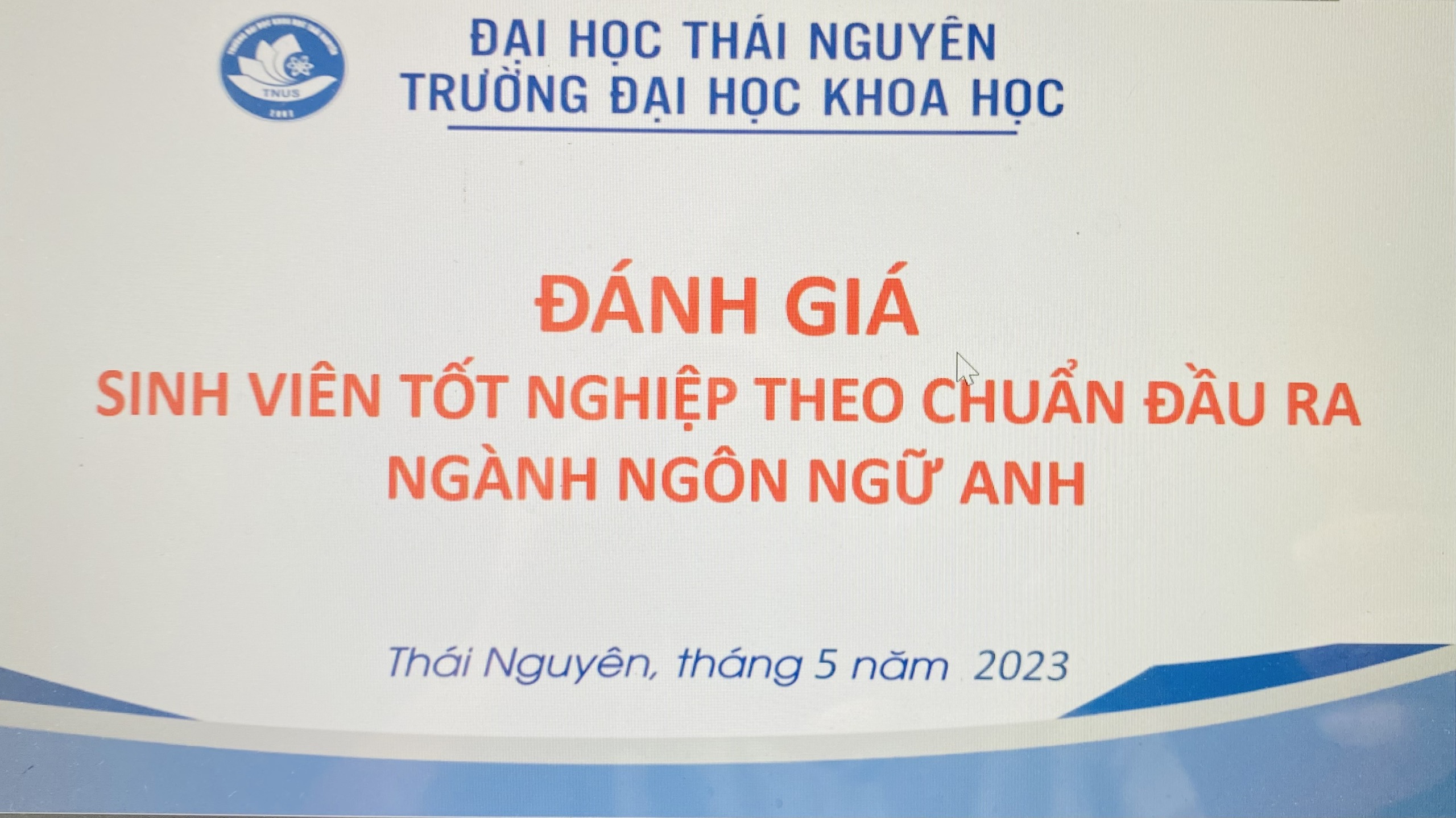 Ngày 26/5/2023, thực hiện kế hoạch công tác Đảm bảo chất lượng giáo dục năm học 2022-2023, Trường Đại học Khoa học - Đại học Thái Nguyên xây dựng Kế hoạch đánh giá sinh viên tốt nghiệp theo chuẩn đầu ra ngành Ngôn ngữ Anh năm 2023.