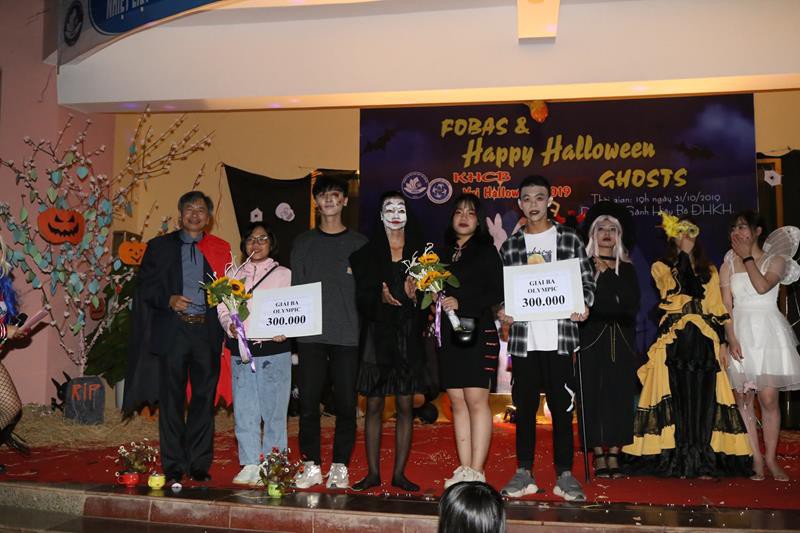 “Halloween fashion show” được xem như là một điểm sáng của sự kiện, được đánh giá cao ở mặt đầu tư trang phuc, hóa trang và khả năng sử dụng tiếng Anh của các bạn sinh viên Khoa Khoa học Cơ bản. Phần thi không chỉ hấp dẫn, lôi cuốn người xem bởi sự đầu tư trang phục mà còn là sự biểu hiện mang đậm dấu ấn sinh viên hiện đại.