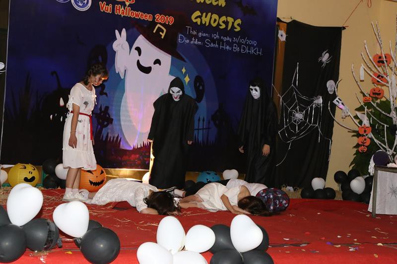 Tối ngày 31/10/2019, tại sảnh nhà Hiệu bộ Trường Đại học Khoa học đã diễn ra đêm hội Halloween đậm sắc màu kì bí. Đêm hội do Khoa Khoa học Cơ bản tổ chức với chủ đề “Những hồn ma vui vẻ”.
