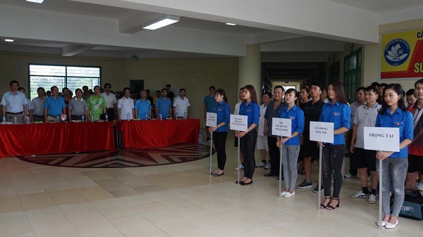 Các đại biểu và các VĐV thi đấu tham gia lễ chào cờ.