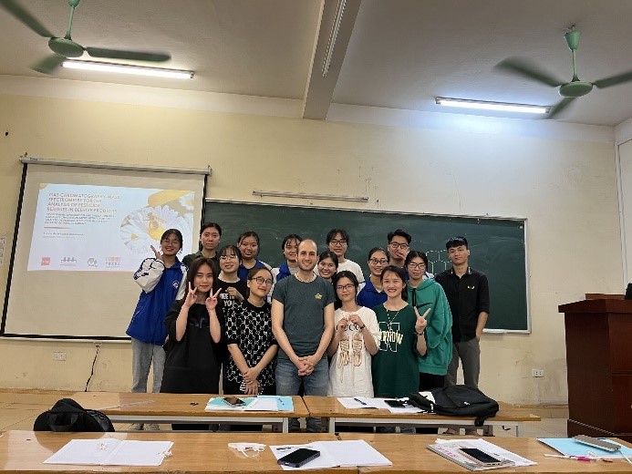 Đặc biệt, giảng viên Adrián Ballesteros đã có các bài giảng cho sinh viên ngành Hóa học với các chủ đề hấp dẫn và thiết thực như: Phương pháp sắc ký khí-khối phổ ứng dụng trong phân tích dư lượng thuốc bảo vệ thực vật trong sản phẩm từ tổ ong; kỹ thuật sắc ký trong trong phân tích thực phẩm. Trong những giờ học, các sinh viên rất hào hứng với các bài giảng, các mẫu thí nghiệm được giảng viên mang đến từ Tây Ban Nha, đồng thời tích cực trao đổi với giảng viên về các kiến thức chuyên môn cũng như các cơ hội tìm kiếm học bổng ở bậc cao hơn tại trường Valladolid.