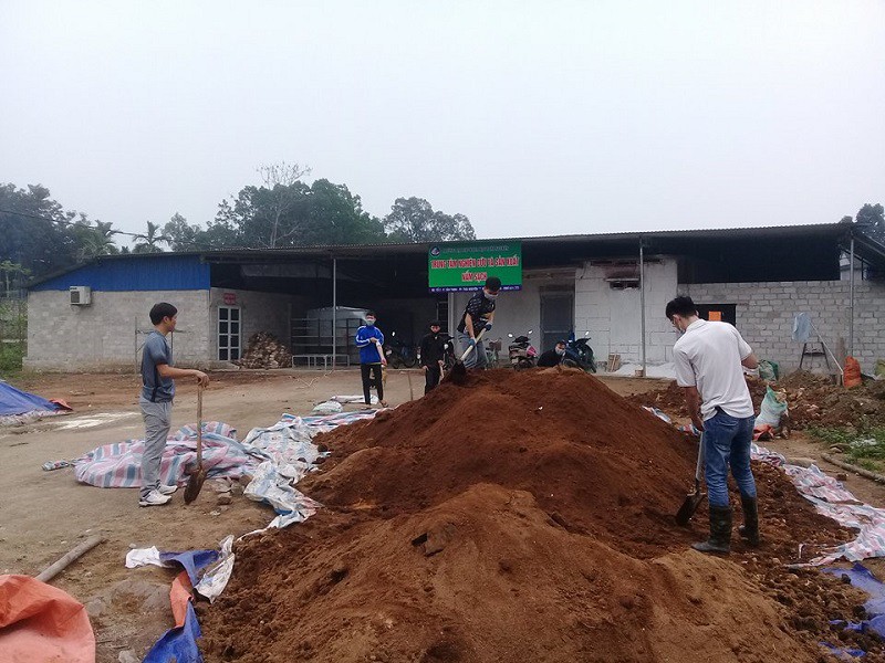 Sinh viên chuẩn bị vật liệu đóng bầu theo chương trình thực tập sản xuất tại Trung tâm