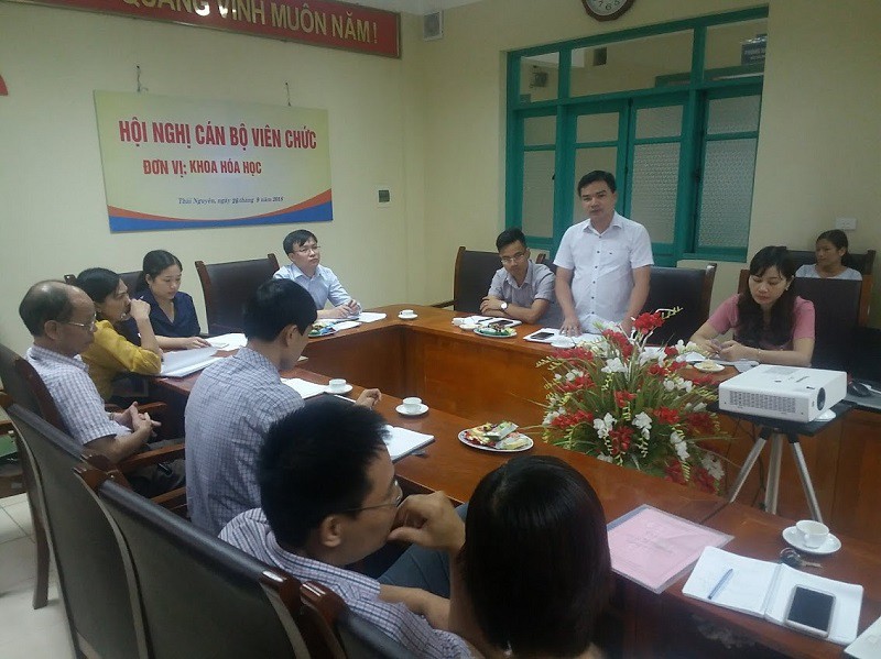 Được sự đồng ý của Đảng ủy, Ban giám hiệu và Công đoàn trường Đại học Khoa học, ngày 26/9/2018, Khoa Hóa học đã tổ chức Hội nghị Cán bộ viên chức năm học 2018 – 2019 để đánh giá những kết quả đã đạt được và chỉ ra những tồn tại cần khắc phục của năm học 2017 - 2018, đồng thời xây dựng kế hoạch chỉ đạo và đưa ra các biện pháp hữu hiệu nhằm thực hiện tốt nhiệm vụ năm học mới 2018 – 2019.