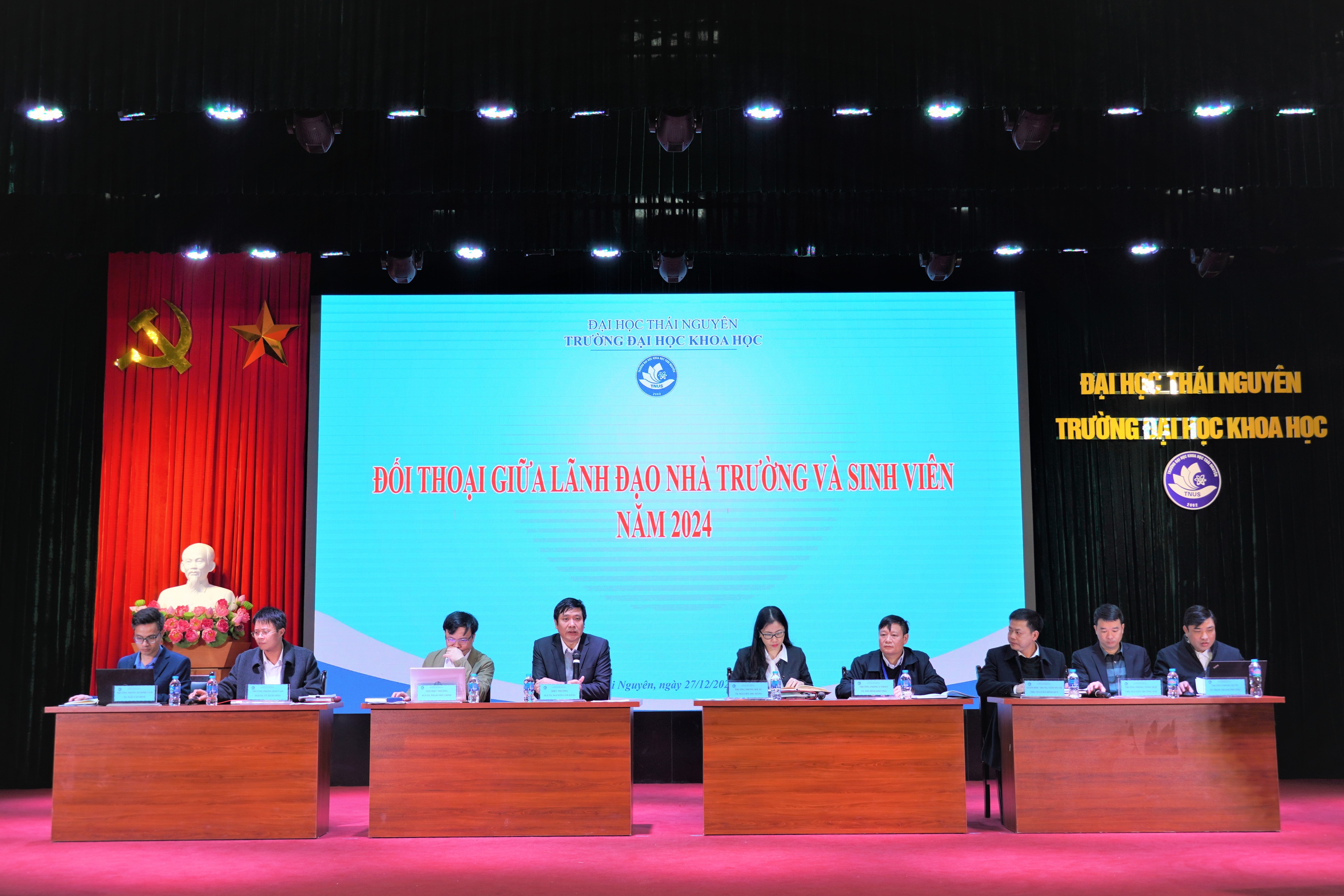 Chiều ngày 27/12/2024, Trường ĐHKH tổ chức Hội nghị đối thoại giữa lãnh đạo Nhà trường với sinh viên. Đây là hoạt động thường niên để lãnh đạo Trường lắng nghe và giải đáp thắc mắc, tâm tư, nguyện vọng của sinh viên, đồng thời thông tin các chủ trương, định hướng phát triển quan trọng của nhà trường đến người học.