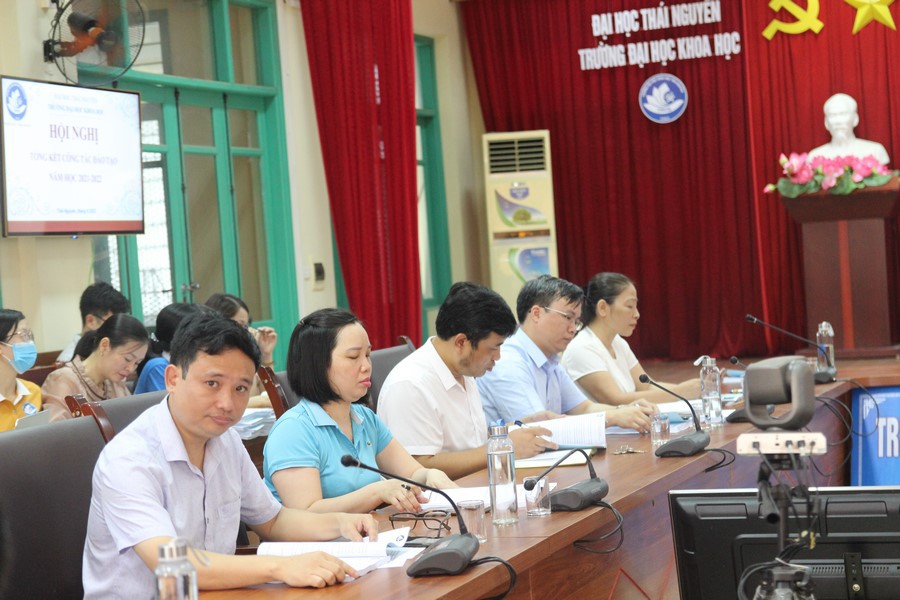 Tham dự hội nghị, có PGS.TS Nguyễn Văn Đăng - Bí thư Đảng ủy, Hiệu trưởng Nhà trường, PGS.TS. Ngô Văn Giới - Phó Bí thư Đảng ủy, Chủ tịch Hội đồng Trường, PGS.TS. Phạm Thị Phương Thái - Phó Hiệu trưởng, PGS.TS. Phạm Thế Chính - Phó Hiệu trưởng, PGS.TS. Trịnh Thanh Hải – Phó Chủ tịch Hội đồng Trường, Trưởng phòng Đào tạo, cùng đại diện các Phòng chức năng, Trung tâm, Viện, Khoa, bộ môn; các thầy cô giáo là Trợ lý đào tạo, cố vấn học tập của các đơn vị trong toàn Trường. Phát biểu khai mạc tại Hội nghị PGS.TS. Nguyễn Văn Đăng - Hiệu trưởng Nhà trường nhận định: Năm học 2021- 2022 diễn ra trong bối cảnh nhiều khó khăn, thách thức, đặc biệt sự bùng phát của đại dịch Covid-19 đã tác động mạnh mẽ đến hoạt động của ngành Giáo dục nói chung và Trường ĐHKH nói riêng, nhiều giai đoạn sinh viên không thể học trực tiếp tại trường, Nhà trường đã linh hoạt, chủ động chuyển trạng thái để thích ứng tình hình mới để đảm bảo thực hiện mục tiêu: vừa bảo đảm an toàn phòng dịch, vừa hoàn thành các nhiệm vụ năm học đảm bảo chất lượng. Điều này thể hiện được tinh thần và quyết tâm cao của tập thể trong việc kiên trì mục tiêu chất lượng, thực hiện chuyển đổi số, tăng cường trang thiết bị, không ngừng nâng cao chất lượng đào tạo. Thầy Hiệu trưởng cũng nêu một số điểm còn tồn tại và mong muốn Hội nghị sẽ thảo luận kỹ và đề xuất các giải pháp để công tác đào tạo của Nhà trường ngày càng hoàn thiện hơn.