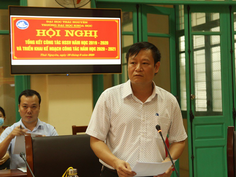 Tại Hội nghị, TS. Phí Đình Khương đã trình bày báo cáo tổng kết công tác HSSV năm học 2019 – 2020, trong đó nhấn mạnh về kết quả, những tồn tại, những mặt hạn chế. Để thực hiện tốt công tác HSSV và chuẩn bị đón tân sinh viên K18, TS. Nguyễn Anh Hùng đã trình bày đề án “Quản lý toàn diện đối sinh viên K18”, trong đó chỉ ra những nội dung cần quản lý như: Về quản lý giờ nghỉ, liên hệ chặt chẽ giữa KTX với GVCN và phụ huynh trong việc quản lý sinh viên; Rèn luyện cho sinh viên ý thức trong nề nếp sinh hoạt văn minh, kỷ luật, nề nếp; tổ chức lao động công ích tại KTX; Rèn luyện sức khỏe, nâng cao thể chất bằng duy trì tập thể dục buổi sáng hàng ngày, áp dụng chế độ ăn ngủ, học tập, sinh hoạt điều độ. Về quản lý giờ học, đối với giờ học chính khóa: Tăng cường điểm danh, đổi mới phương pháp dạy học; Giờ tự học: Ngoài giờ học chính khóa, xây dựng thời khóa biểu tự học, có cán bộ quản lý, dạy bổ trợ kiến thức (Tiếng Anh, Tin học, Kỹ năng…). Ngoài ra, Nhà trường sẽ thường xuyên tổ chức các hoạt động ngoại khóa, công tác xã hội, VHVN-TDTT: Giúp bổ trợ kiến thức, bổ sung các kỹ năng và kinh nghiệm sống cho sinh viên.