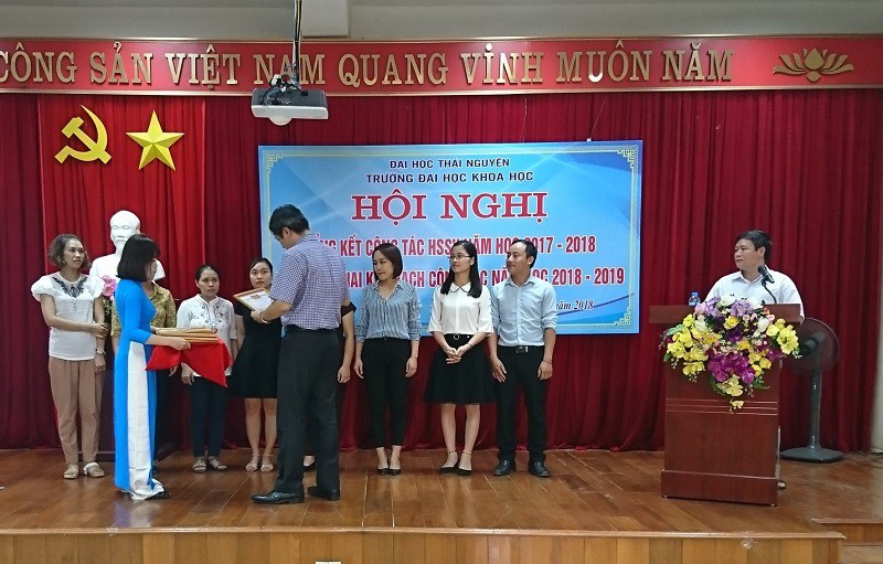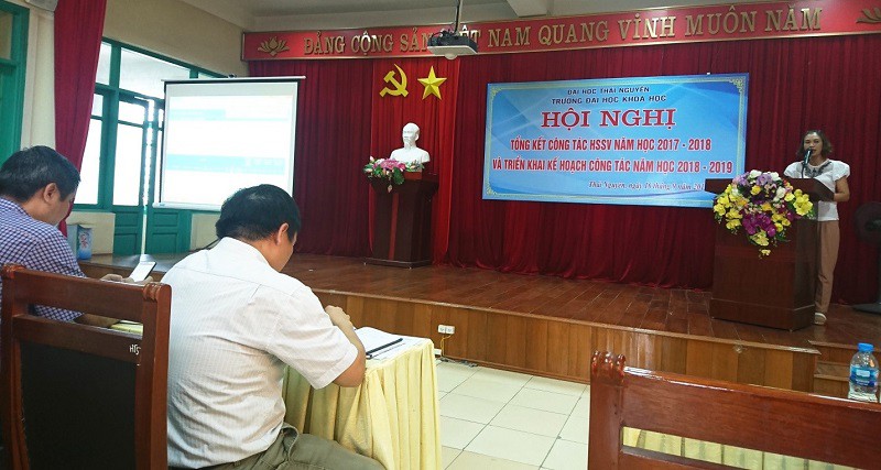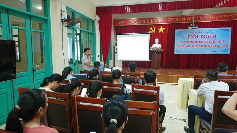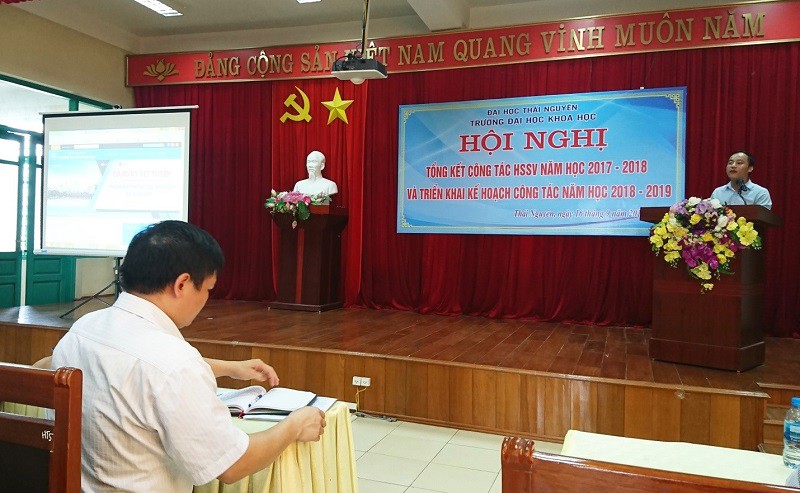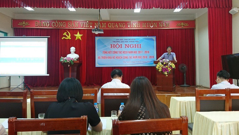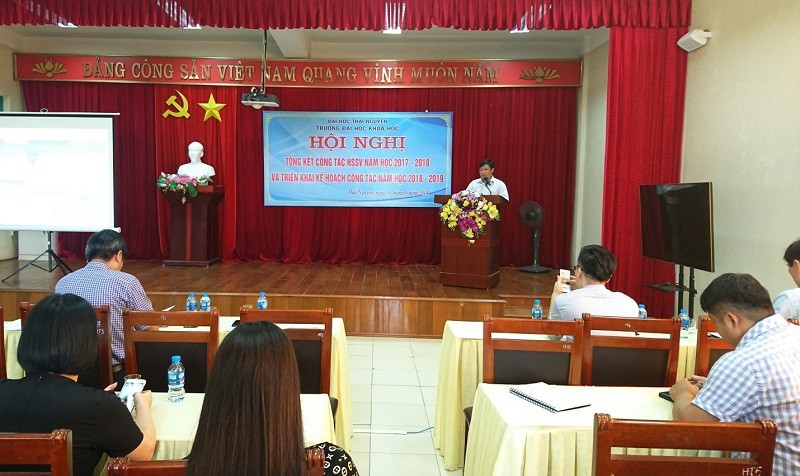Thực hiện kế hoạch năm học 2018-2019, ngày 16 tháng 09 năm 2018, Trường Đại học Khoa học - Đại học Thái Nguyên đã tổ chức Hội nghị tổng kết công tác học sinh, sinh viên (HSSV) năm học 2017-2018 và triển khai nhiệm vụ công tác sinh viên năm học 2018-2019. Đây là Hội nghị thường niên của Nhà trường nhằm đánh giá, tổng kết công tác quản lý HSSV trong thời gian qua và đề ra những phương hướng, nhiệm vụ cho thời gian tới. Đồng thời, đề xuất, trao đổi những kinh nghiệm, giải pháp để phối hợp trong quá trình thực hiện công tác giữa các phòng ban chức năng với Khoa/Bộ môn được hiệu quả và chặt chẽ hơn.