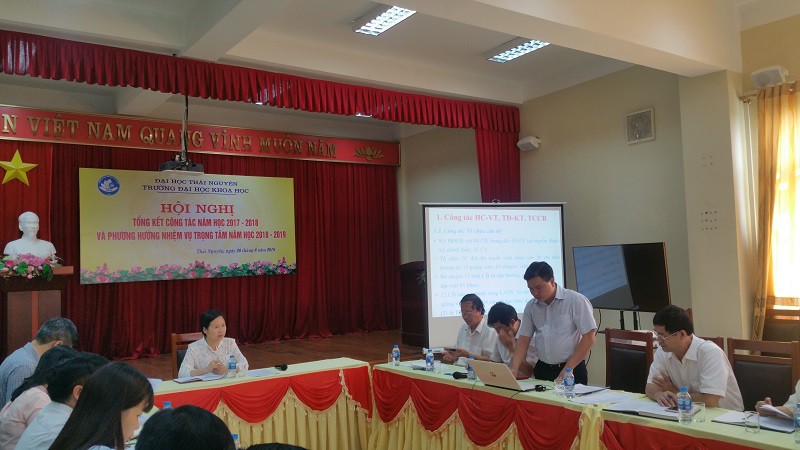Ngày 20 tháng 8 năm 2018, Hội nghị Tổng kết công tác năm học 2017-2018 và Phương hướng nhiệm vụ trọng tâm năm học 2018-2019 với sự tham dự của toàn thể cán bộ chủ chốt Trường Đại học Khoa học- Đại học Thái Nguyên đã diễn ra thành công. Trong thời gian diễn ra hội nghị, nhiều vấn đề quan trọng đã được đưa ra thảo luận và quyết định như: công tác cán bộ, công tác đào tạo, công tác khảo thí và đảm bảo chất lượng, công tác quản trị- phục vụ…