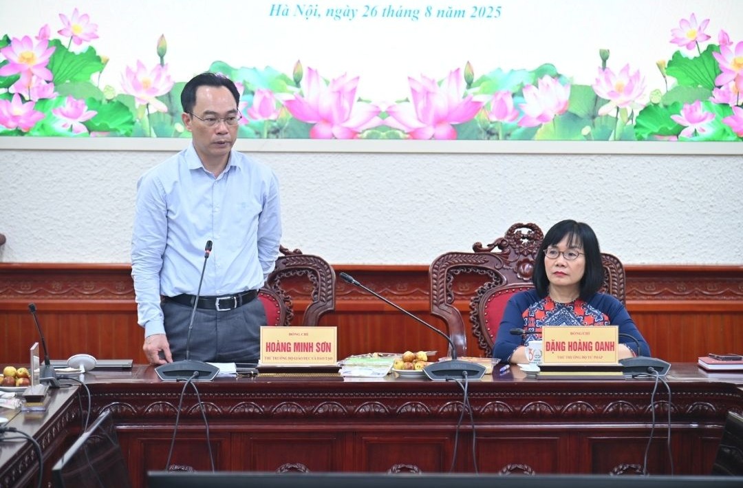 Hội nghị do Thứ trưởng Bộ Giáo dục và Đào tạo Hoàng Minh Sơn và Thứ trưởng Bộ Tư pháp Đặng Hoàng Oanh đồng chủ trì, cùng sự tham dự của lãnh đạo các đơn vị chức năng thuộc hai Bộ. Về phía các cơ sở đào tạo, đoàn công tác Trường Đại học Khoa học, Đại học Thái Nguyên do PGS.TS. Nguyễn Văn Đăng – Bí thư Đảng ủy, Hiệu trưởng Nhà trường – làm trưởng đoàn; Trường Cao đẳng Luật miền Bắc do TS. Hoàng Xuân Châu – Hiệu trưởng, làm trưởng đoàn.
