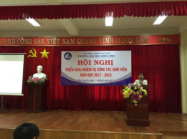 Thực hiện kế hoạch năm học 2017 – 2018, sáng ngày 24 tháng 9 năm 2017, tại hội trường tầng 5 nhà hiệu bộ, Trường Đại học Khoa học tổ chức Hội nghị triển khai nhiệm vụ công tác sinh viên năm học 2017 – 2018 nhằm tổng kết công tác sinh viên trong năm học 2016 – 2017 và triển khai các nhiệm vụ công tác sinh viên năm học 2017 – 2018.