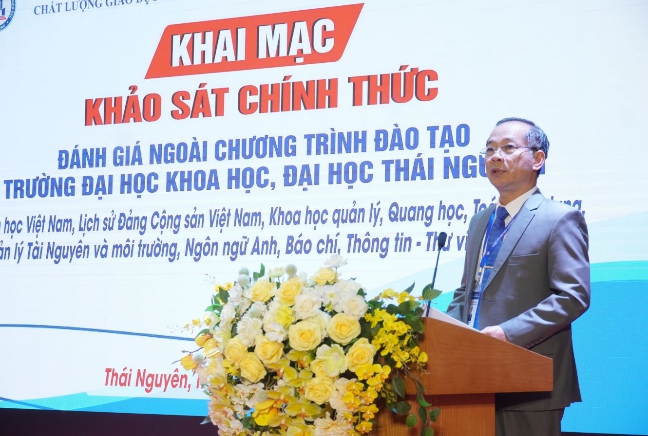 Phát biểu tại phiên Khai mạc, TS. Phạm Minh Đàm, đại diện Trung tâm Kiểm định CLGD Thăng Long và Đoàn chuyên gia đã bày tỏ lời cảm ơn chân thành tới Trường Đại học Khoa học vì sự tin tưởng, lựa chọn và phối hợp hiệu quả với Trung tâm để triển khai hoạt động đánh giá ngoài CTĐT. Bên cạnh việc giới thiệu thành phần Đoàn, mục tiêu và nội dung của đợt khảo sát chính thức, TS. Phạm Minh Đàm cũng đề nghị Nhà trường và các đơn vị, cá nhân liên quan tiếp tục phối hợp chặt chẽ, tạo điều kiện thuận lợi để Đoàn chuyên gia hoàn thành tốt nhiệm vụ trong thời gian làm việc tại Trường.
