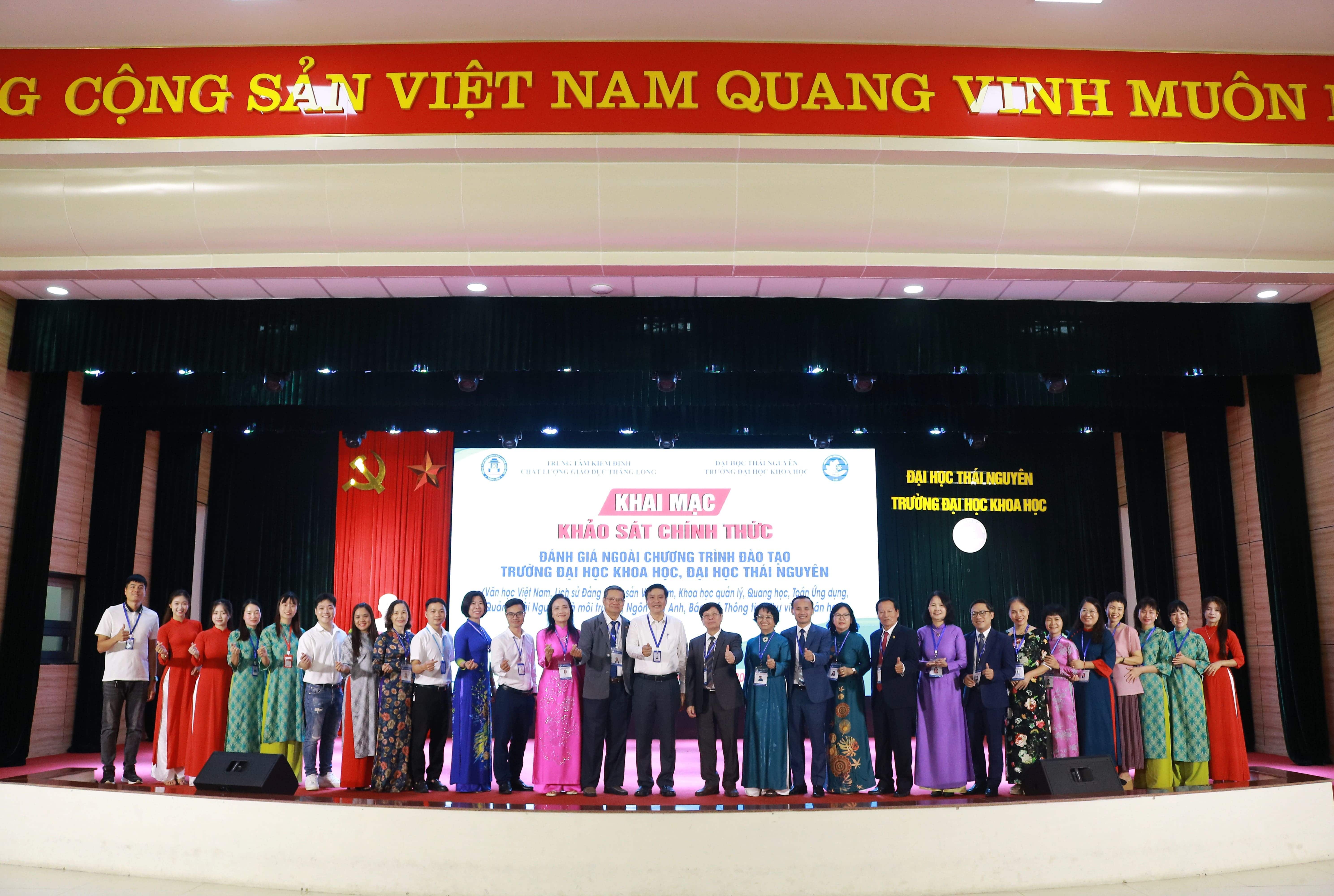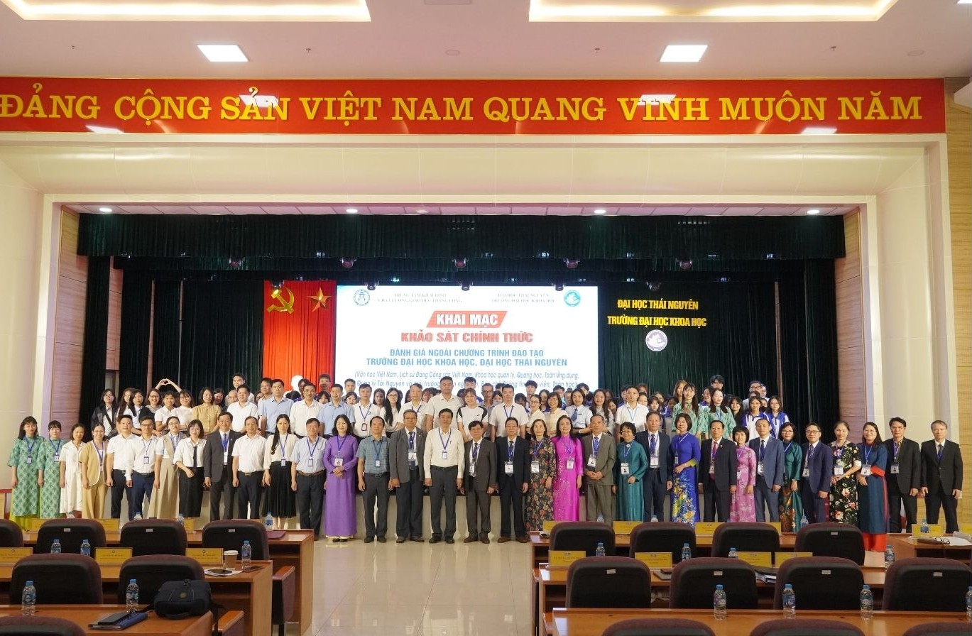 Sáng ngày 26/09, Trường Đại học Khoa học phối hợp với Trung tâm Kiểm định chất lượng giáo dục (KĐCLGD) Thăng Long tổ chức Khai mạc đợt khảo sát chính thức đánh giá ngoài (ĐGN) 10 chương trình đào tạo của Trường Đại học Khoa học theo tiêu chuẩn của Bộ Giáo dục và Đào tạo ban hành. Các CTĐT được đánh giá lần này gồm 04 CTĐT bậc Đại học (Ngôn ngữ Anh, Báo chí, Thông tin – Thư viện, Toán học) và 06 CTĐT bậc Thạc sĩ (Văn học Việt Nam, Lịch sử Đảng Cộng sản Việt Nam, Khoa học quản lý, Quang học, Toán Ứng dụng, Quản lý Tài nguyên và Môi trường).