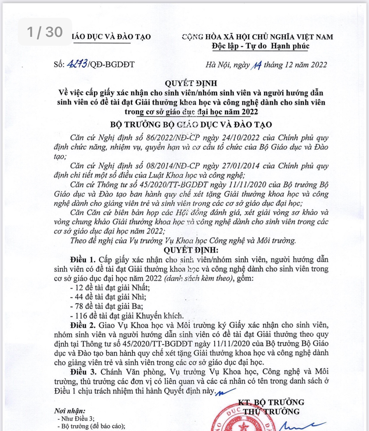 Nhằm tổng kết, đánh giá, tuyên dương và khen thưởng sinh viên có thành tích xuất sắc trong học tập và nghiên cứu khoa học năm 2022, Khoa Công nghệ Sinh học đã tổ chức chương trình Khen thưởng sinh viên xuất sắc vào chiều 26/03/2023.