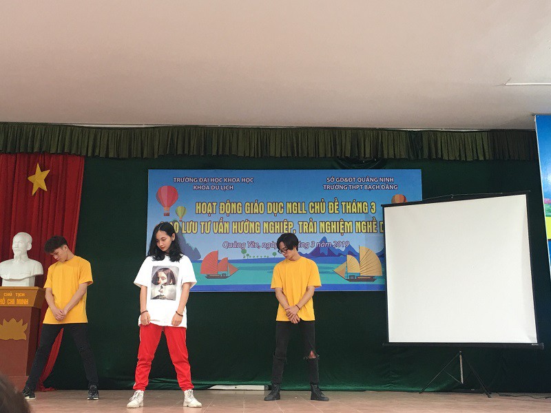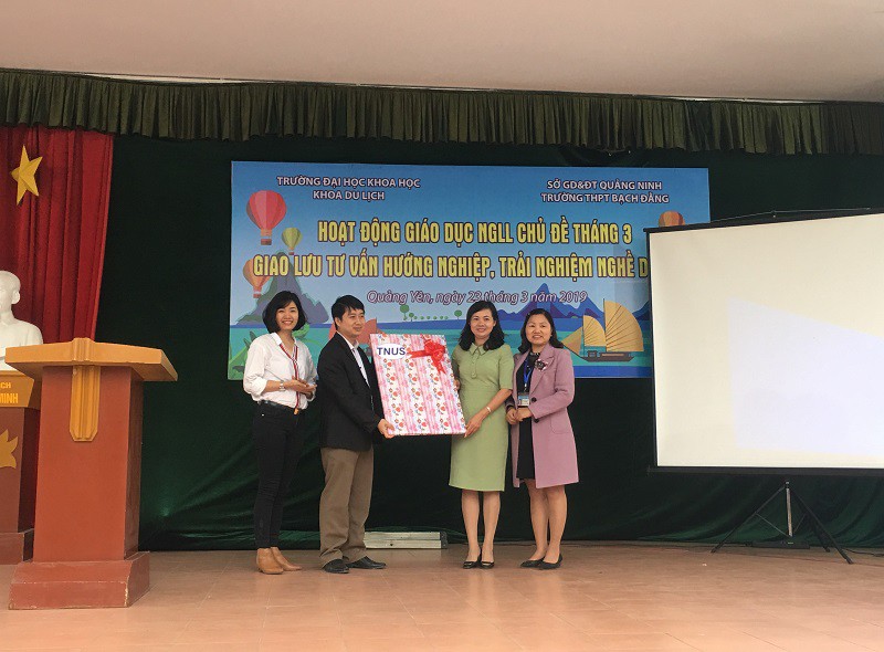 Nằm trong chuỗi các hoạt động tư vấn hướng nghiệp của Trường Đại học Khoa học, ngày 23/3/2019, Khoa Du lịch đã phối hợp với Trường THPT Bạch Đằng (Thị xã Quảng Yên, tỉnh Quảng Ninh) tổ chức thành công chương trình “Giao lưu tư vấn hướng nghiệp, trải nghiệm nghề du lịch” cho các em học sinh trong Nhà trường.