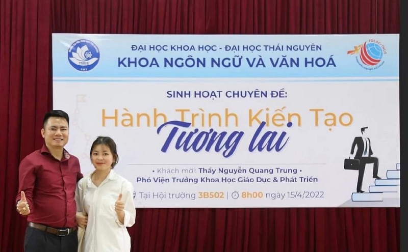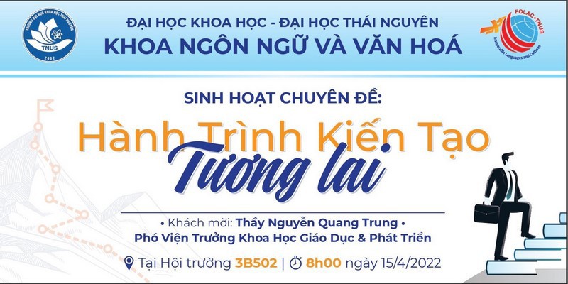 8h00’, ngày 15-04-2022 tại Hội trường 3B502, Khoa Ngôn ngữ và Văn hóa, Trường Đại học Khoa học -ĐHTN đã tổ chức buổi sinh hoạt chuyên đề “Hành trình kiến tạo tương lai”.