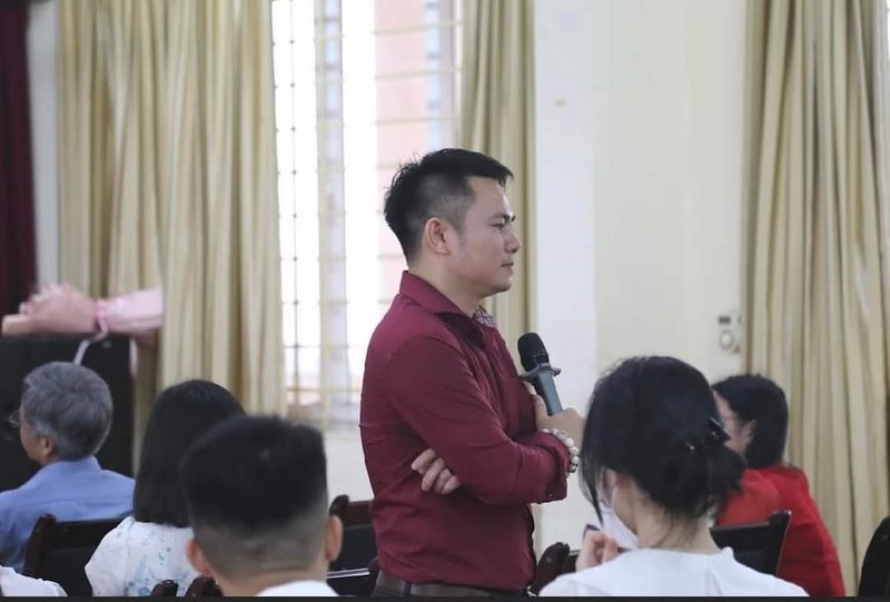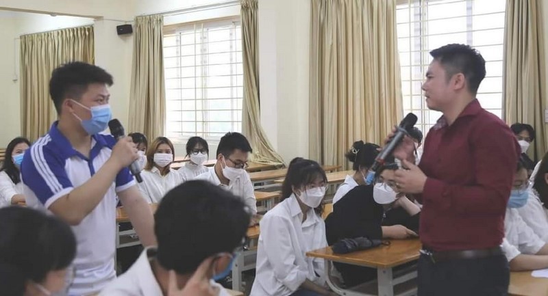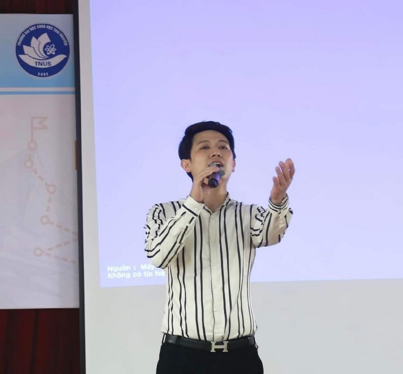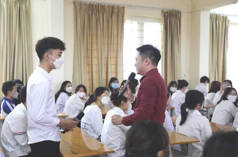 Diễn giả Nguyễn Quang Trung đang trao đổi, truyền cảm hứng cho các bạn SV