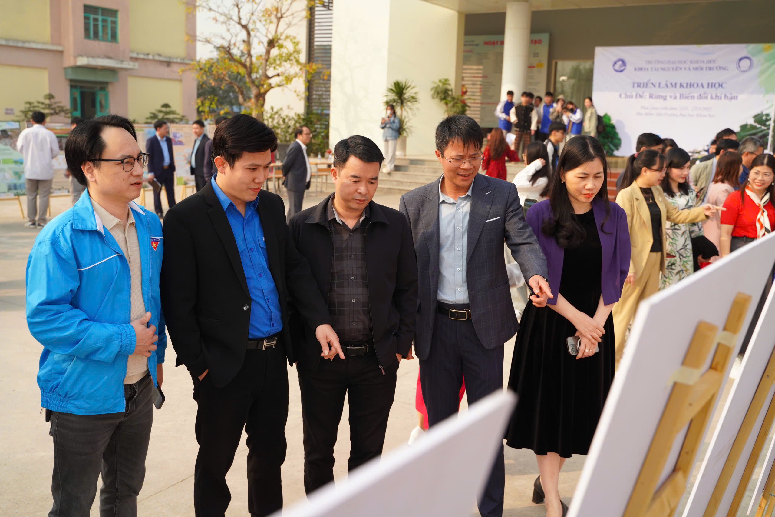 Phát biểu khai mạc, PGS.TS. Kiều Quốc Lập, Trưởng Khoa Khoa Tài nguyên và Môi trường, Trường ĐHKH nhấn mạnh: “Triển lãm khoa học Rừng và Biến đổi khí hậu tôn vinh những đóng góp vô giá của rừng và vai trò đặc biệt của rừng với biến đổi khí hậu toàn cầu; 27 tranh triển lãm đi sâu vào nhiều chủ đề bao gồm: khả năng hấp thụ cacbon của rừng, đa dạng sinh học và tài nguyên rừng; kinh tế lâm nghiệp bền vững; mối quan hệ phức tạp giữa con người và rừng; chính sách và luật liên quan đến rừng; mối đe dọa cấp bách của cháy rừng và nạn phá rừng. Thông qua các tương tác hấp dẫn, khán giả sẽ hiểu sâu hơn về những thách thức mà rừng đang phải đối mặt, cùng sự cấp thiết của các giải pháp quản lý rừng bền vững”.