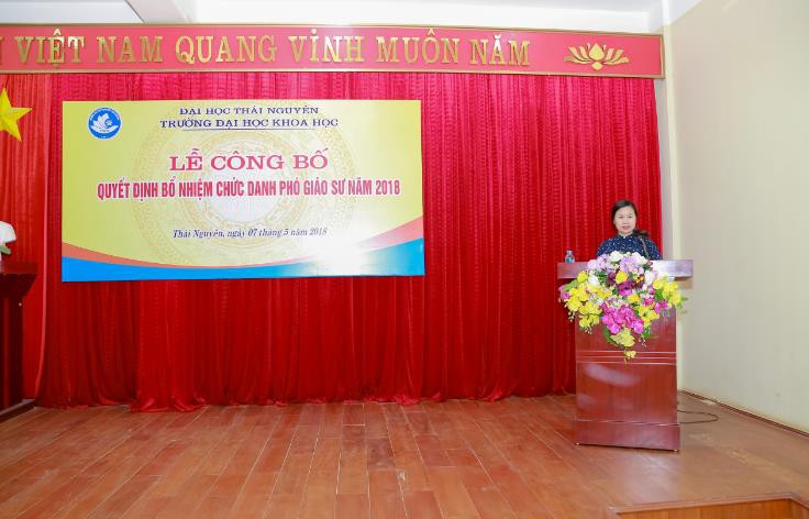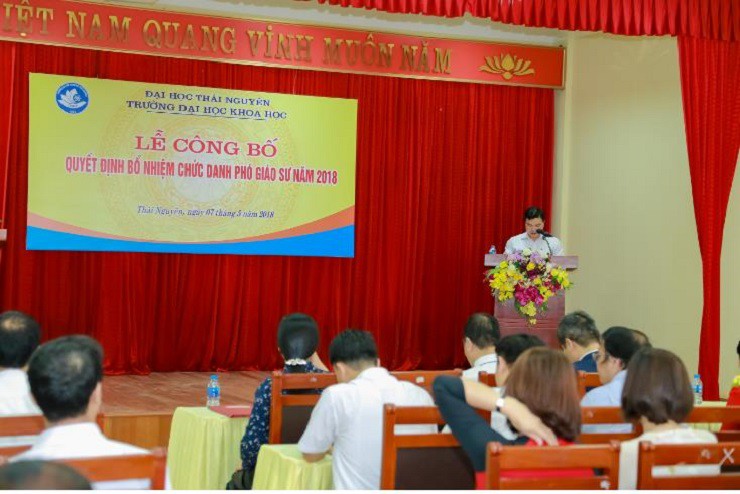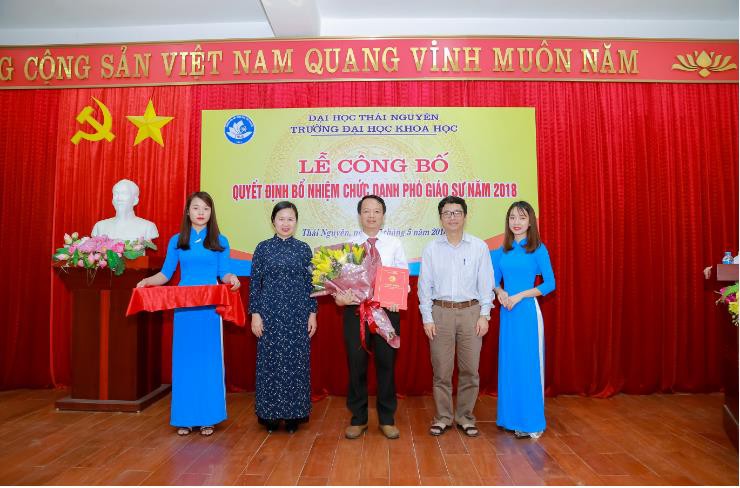 Ngày 07/5/2018, tại Hội trường Tầng 5 trường Đại học Khoa học, Đại học Thái Nguyên đã long trọng công bố Quyết định bổ nhiệm chức danh Phó giáo sư năm 2018 cho 04 Phó giáo sư là giảng viên của Nhà trường