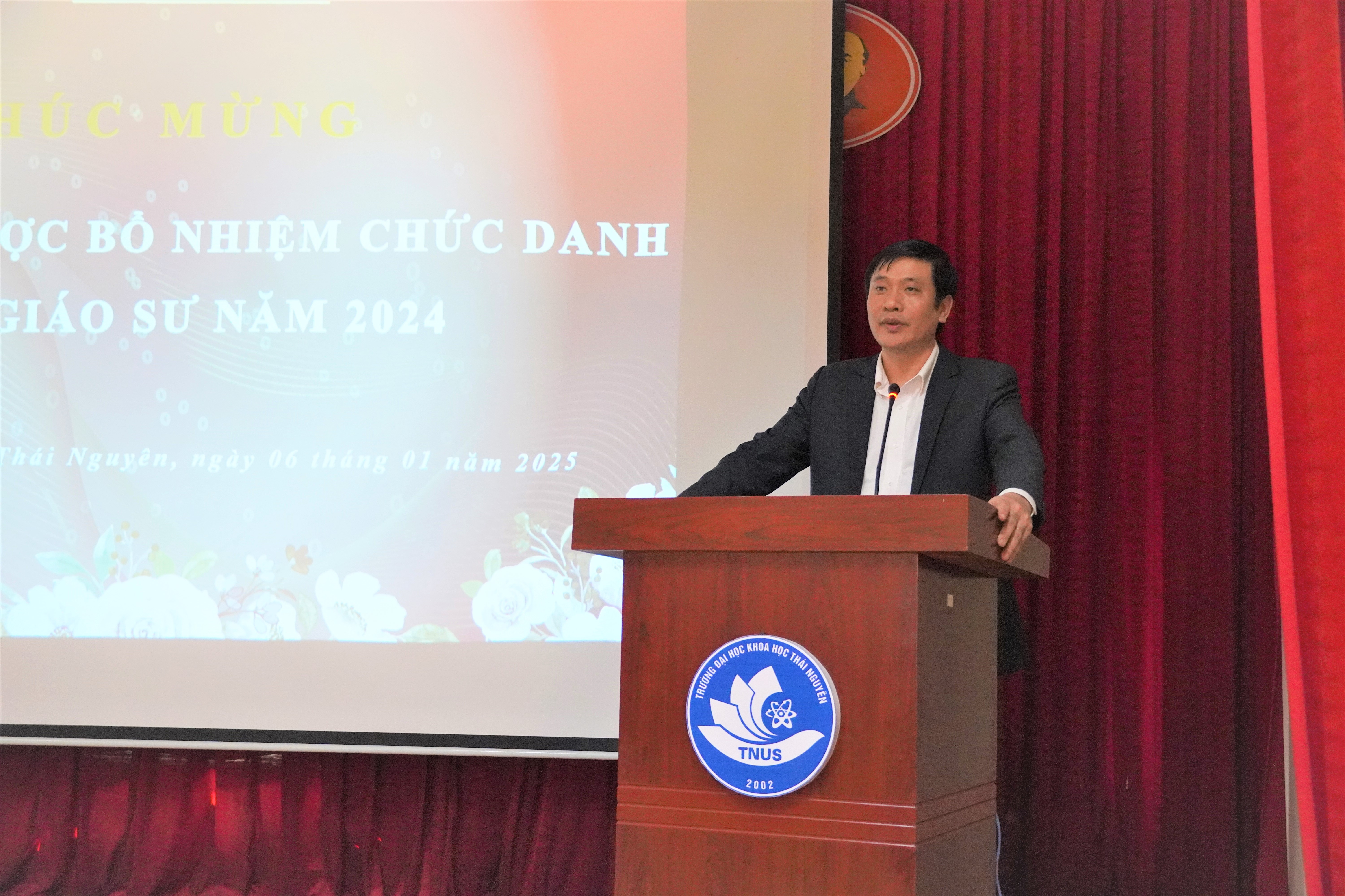 Ảnh 4: PGS.TS. Nguyễn Văn Đăng - Hiệu trưởng, phát biểu chúc mừng các đồng chí CBQL được bổ nhiệm