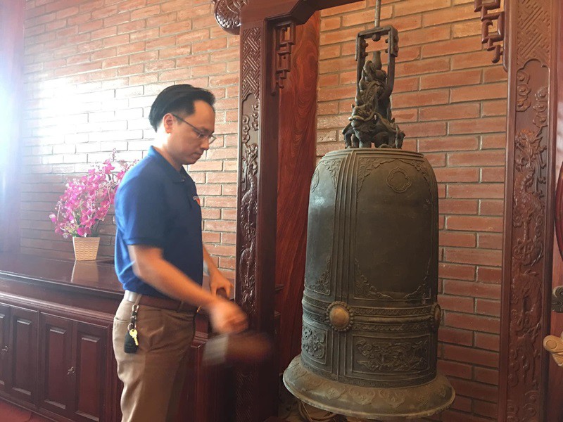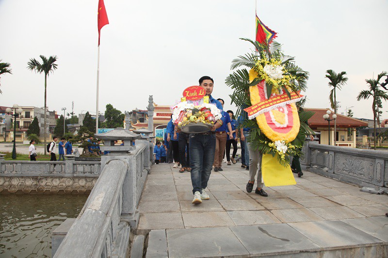 Để bắt đầu lễ dâng hương, Ban Tổ chức đã mời đồng chí Ngô Ngọc Linh – Bí thư Đoàn trường và đồng chí Trương Phúc Hưng – Phó Bí thư Đoàn trường cùng lên thỉnh 9 hồi chuông và 9 hồi khánh. Sau đó, toàn đoàn thành kính, tiến vào chính điện dâng hương tưởng nhớ đến các anh hùng liệt sỹ TNXP đại đội 915 đã hy sinh khi đang làm nhiệm vụ vào đêm NOEL 24/12/1972.