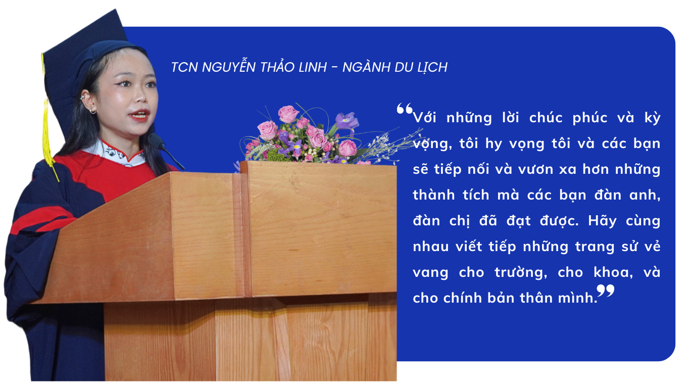 Là một trong những sinh viên xuất sắc nhất toàn khóa, tân cử nhân Nguyễn Thảo Linh - ngành Du lịch đã gửi những lời tri ân chân thành, những lời yêu thương đong đầy đến gia đình, thầy cô, những người bạn đã cùng nhau gắn bó suốt thời gian học tập ở ngôi trường hạnh phúc.