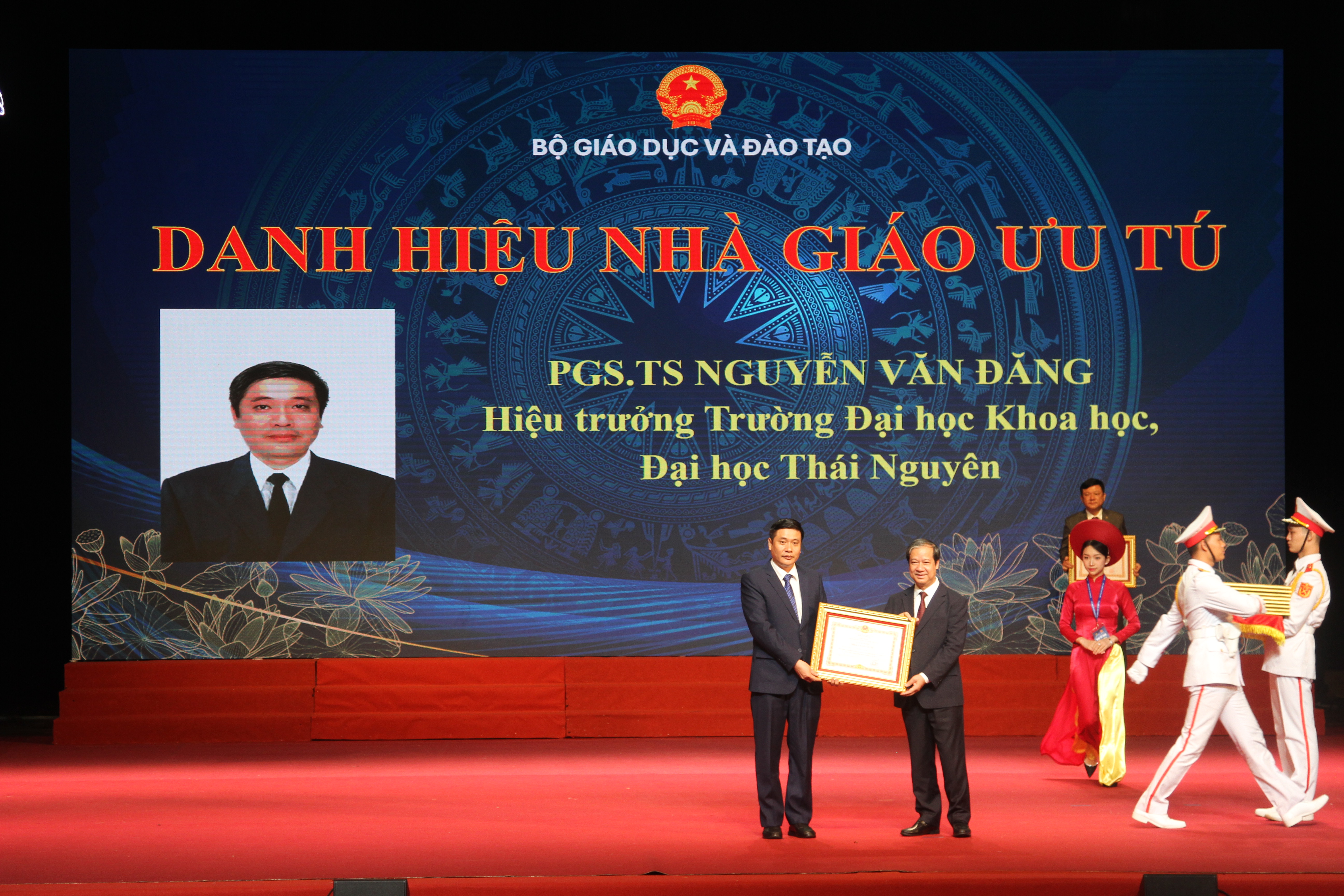 Sáng ngày 17/11/2024, Tại Hà Nội, Bộ Giáo dục và Đào tạo (GD&ĐT) tổ chức Lễ Trao tặng danh hiệu NGND, NGƯT lần thứ 16 và tuyên dương nhà giáo tiêu biểu năm 2024. PGS.TS. Nguyễn Văn Đăng - Bí thư Đảng uỷ, Hiệu trưởng Trường Đại học Khoa học vinh dự được phong tặng danh hiệu Nhà giáo ưu tú.