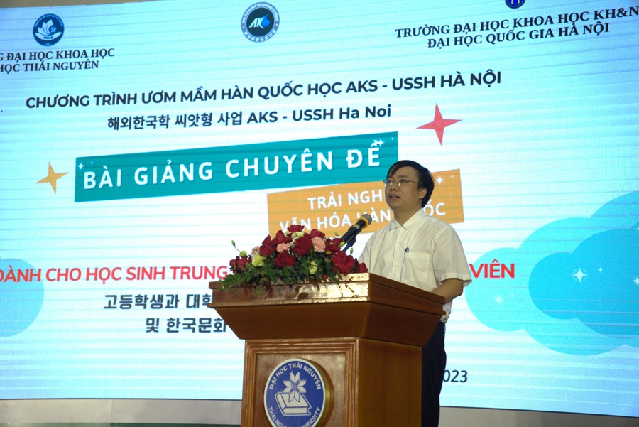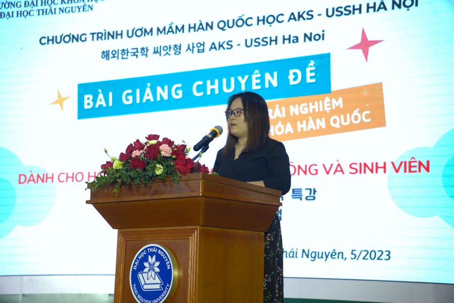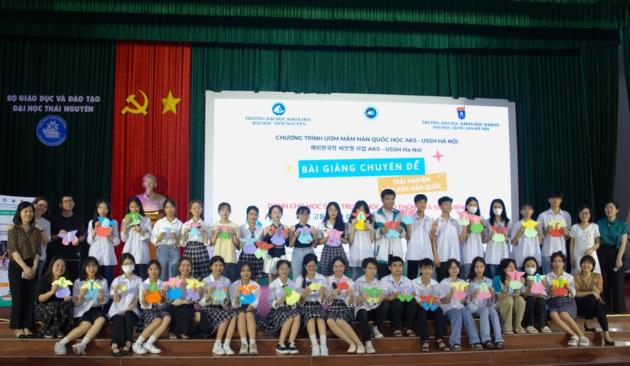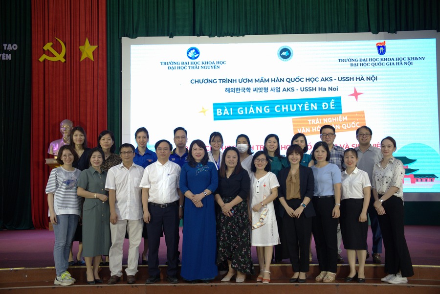 Ngày 27/05 vừa qua, Trường Đại học Khoa học (TNUS) phối hợp cùng Trường Đại học Khoa học – Xã hội và Nhân văn (USSH), Đại học Quốc gia Hà Nội tổ chức chương trình “Bài giảng chuyên đề và trải nghiệm văn hóa Hàn Quốc dành cho học sinh THPT và sinh viên” và “ Tọa đàm: “ Ngôn ngữ và văn hóa Hàn Quốc dưới góc nhìn của sinh viên”. Hai chương trình đều nằm trong chương trình dự án “ Ươm mầm Hàn Quốc học AKS - USSH Hà Nội.