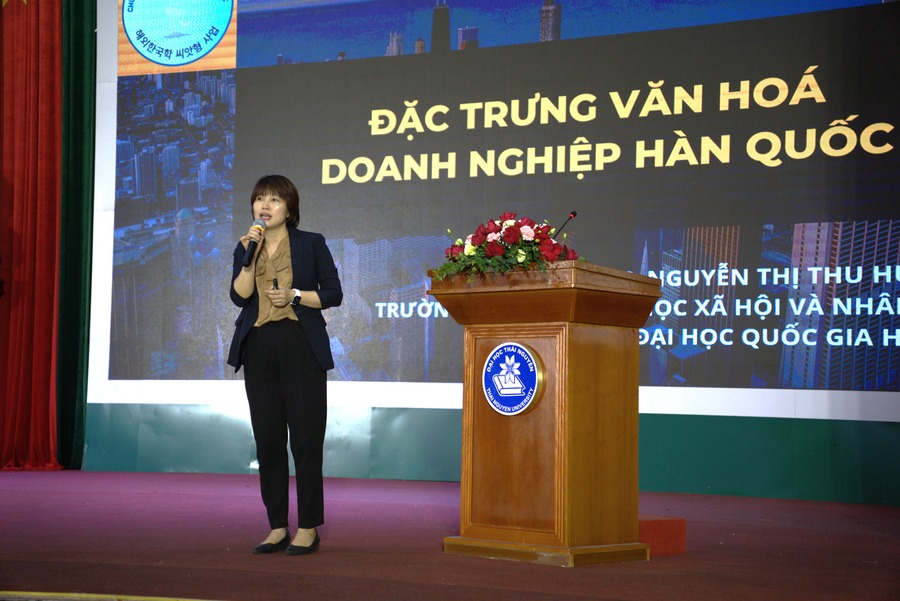 Ảnh 3: TS. Lê Thị Thu Giang – Trưởng Khoa Đông phương học, Trường ĐHKHXH&NV phát biểu chia sẻ tại chương trình