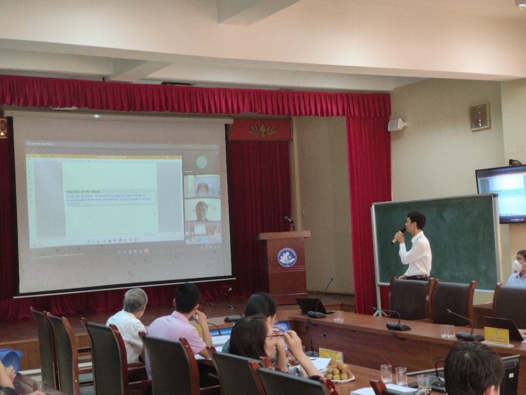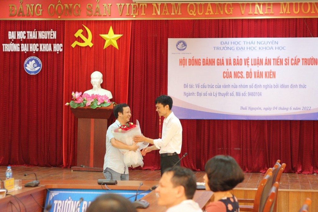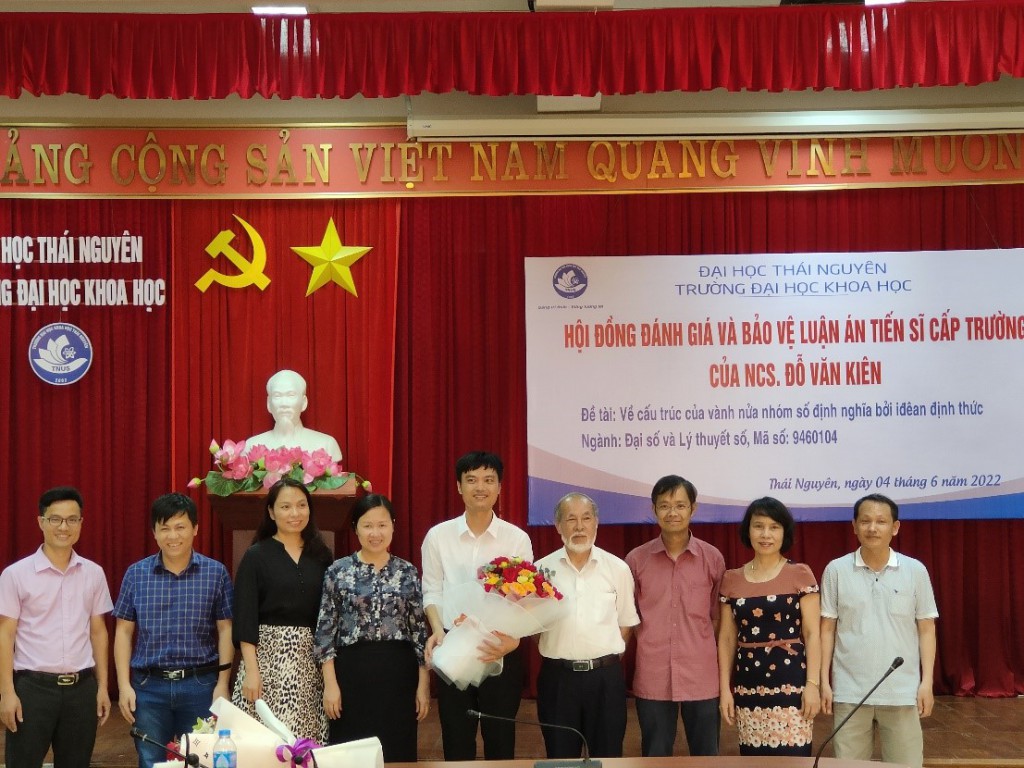 Ngày 04 tháng 6 năm 2022, tại Trường Đại học Khoa học - ĐHTN, Hội đồng đánh giá Luận án Tiến sĩ cấp Trường (theo Quyết định số 200/QĐ-ĐHKH ngày 28 tháng 2 năm 2022 của Hiệu trưởng Trường Đại học Khoa học) đã họp để đánh giá luận án của NCS. Đỗ Văn Kiên với đề tài: “Về cấu trúc của vành nửa nhóm số định nghĩa bởi iđêan định thức”.